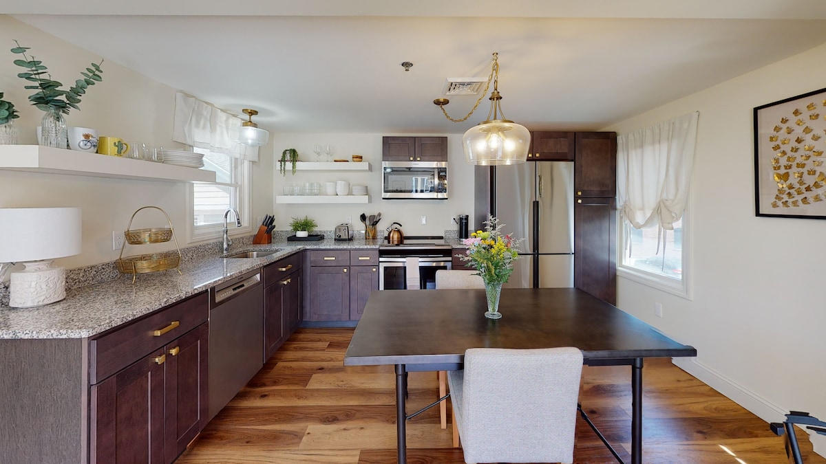 El encanto y la historia se unen a la comodidad moderna en esta impresionante granja renovada. Construida en 1810, esta hermosa casa fue una vez la residencia del Sr. Prince, quien presidió la granja Tobey Quarry. A solo unos pasos de la ciudad, la casa de campo es el refugio ideal para una escapada tranquila y acogedora. O como plataforma de lanzamiento para las numerosas ofertas culturales y al aire libre de la zona. ¡Te damos una cálida bienvenida!