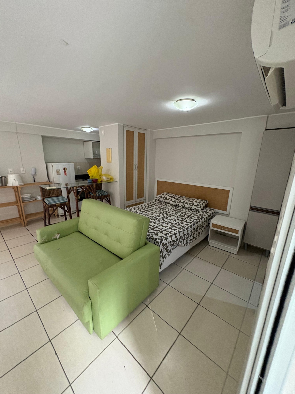 Abrace a simplicidade neste lugar tranquilo e bem-localizado perto de tudo feirinhas mercadinhos, restaurantes padaria etc. Um pequeno Apto Sem vista, para Casais ou solteiros ,são Duas camas de solteiro que juntando se torna uma king por cima um Pillow Top Qualidade, Ar Condicionado, Tv , CHUVEIRO NOVO, microondas,utensílios básico de cozinha. propriedade contendo um restaurante a beira mar com uma ótima piscina, acesso direto para a praia de ponta Negra, seu final de semana garantido.