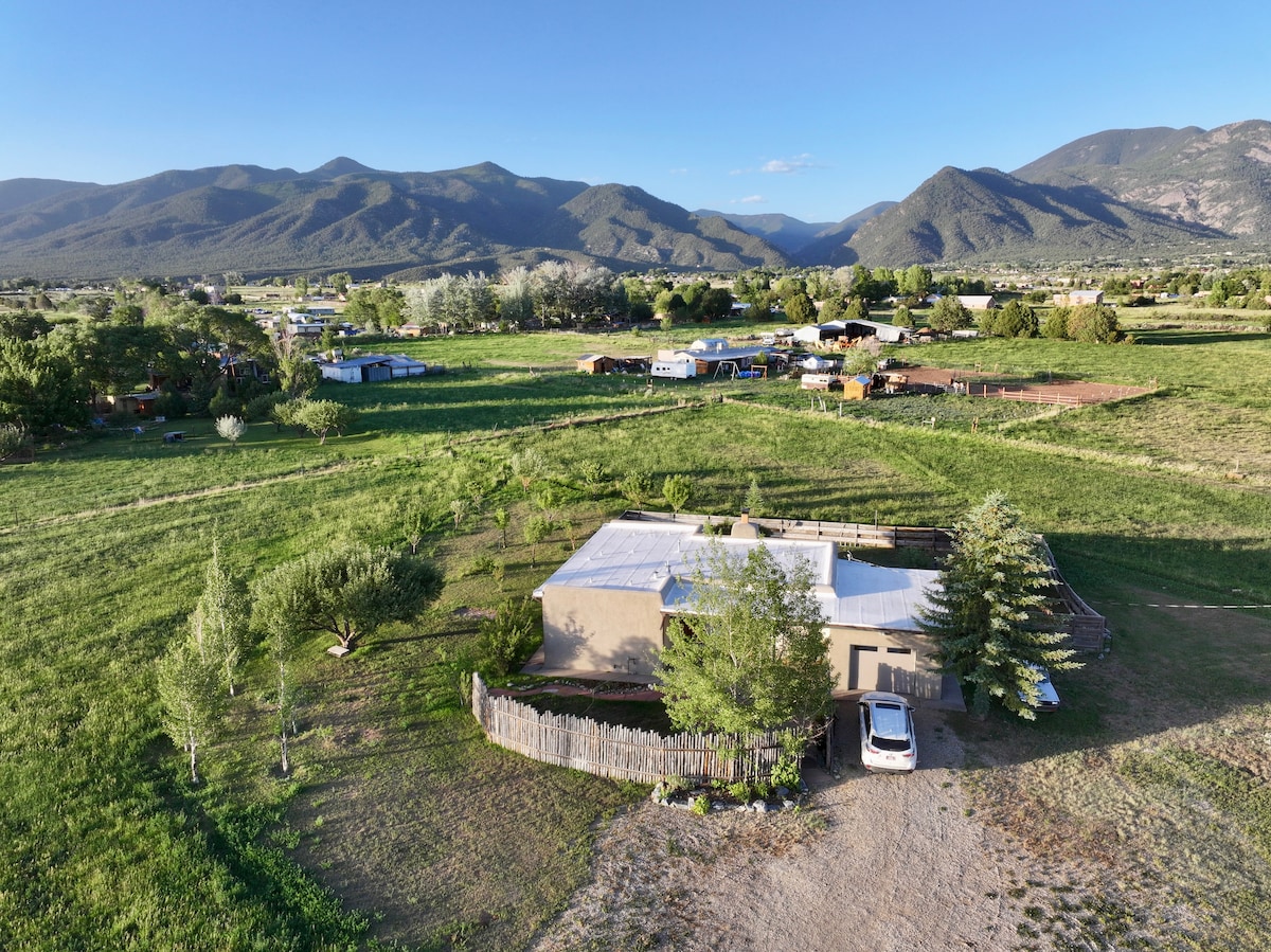 An architectural gem with private access to natural hot springs in the Rio Grande Gorge Park. A living and breathing piece of art on fifteen private acres nestled amongst junipers trees, pinon and sage brush, offering sweeping views of the surrounding valley. Sustainably built with cast earth walls, corrugated metal roof, radiant heat, and Japanese style mahogany wood work, plus all the amenities and comforts of a modern home. Miles of hikes into and above the Rio Grande River and Gorge.