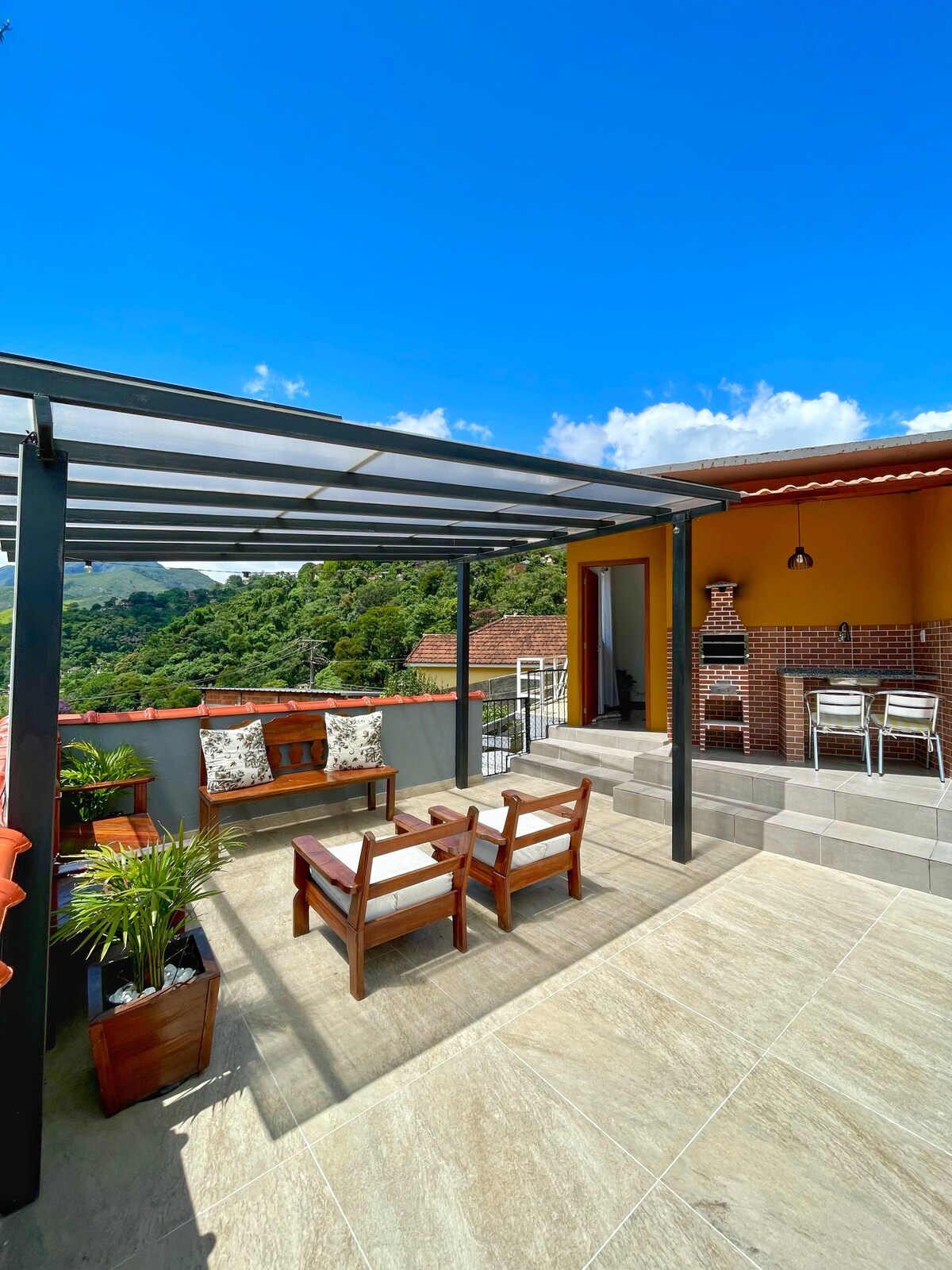Perfecto para familias y amigos, este sitio en la cima de la montaña ofrece privacidad, instalaciones de ocio, descanso y contemplación. Hermosos jardines y una vista única de Miguel Pereira y Paty do Alferes. Casa de estilo granja con 3 dormitorios para hasta 11 personas, piscina climatizada, quiosco acristalado con parrilla, horno de leña, Smart TV de 43" y Wi-Fi, lago y mirador con fogata. A 10 minutos en auto de los centros de las dos ciudades, con acceso rápido a tiendas, restaurantes y atracciones turísticas.