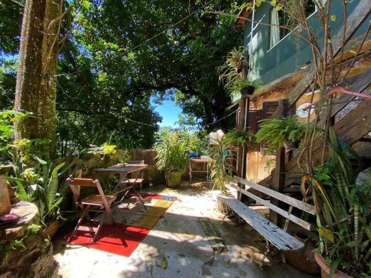 Nuestra casa está escondida justo en el límite del Parque Ecológico de Vidigal, Sitie. Tus vecinos en 2 lados son una gran cantidad de árboles, plantas frutales y otras maravillas naturales. Se sabe que los pequeños monos se acercan a la ventana. Es la ubicación más tranquila dentro de Vidigal. Cuando estás aquí, no te molesta el tráfico cercano ni otros ruidos. Tenemos un jardín enorme y nuestro objetivo es cultivar toda la naturaleza que nos rodea. Puedes oír el sonido de las olas en el océano mientras te vas a dormir.