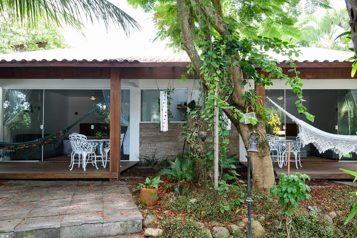 La casa está ubicada en una isla en Barra da Tijuca. Son dos suites que componen una edificación, y se puede acceder a través de la misma entrada de la casa. Es el lugar ideal para aquellos que quieren estar en un lugar tranquilo, dentro de la ciudad, con mucha naturaleza y animales cerca. (Si desea reservar solo una de las habitaciones, busque estos anuncios de habitaciones separadas: https://www.airbnb.com/rooms/22845566 y https://www.airbnb.com/rooms/22359735.)