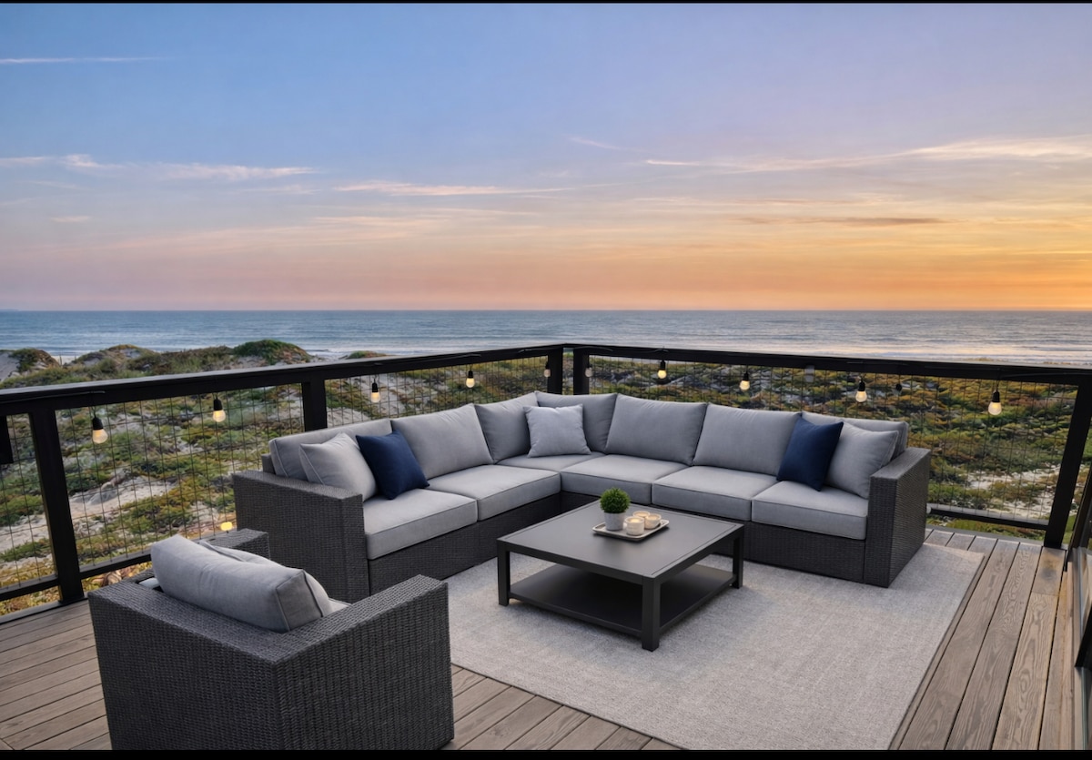 Disfruta de hermosas puestas de sol desde esta villa recientemente remodelada en North Bluff, con una decoración de playa cristalina, cómodos colchones tamaño king y un hermoso sofá cama tamaño queen. Electrodomésticos de acero inoxidable de alta gama (en caso de que tengas ganas de cocinar). A poca distancia a pie de restaurantes, centro comercial Seascape Village, piscina/bañera de hidromasaje, sendero a la playa. Aparcamiento cubierto disponible para vehículos eléctricos, el ascensor te lleva al segundo piso. Disfruta escuchando tus propias canciones a través de un sistema de sonido personalizado. TV con Netflix. Acceso a internet.