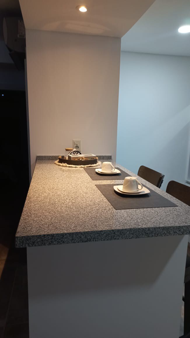 Espacio Tranquilo y Elegante con Cercanía al Centro y Costa del Mar. Ubicado Sureste de la Ciudad. Acceso al Teansporte Público. Nuevo, Baño Completo, Cocina Integrada Totalmente Equipada, Heladera, Microondas, Vajilla Completa. Comedor, Smart TV, Cama Matrimonial. Baño Completo, Ducha (toallas, jabón, Shampoo, etc) Calefacción. Conexión Wi-Fi gratuita. El Dpto se Encuentra en una Zona Tranquila y Segura, Ideal para Parejas o Profesionales. estacionamiento incluido. No mascotas.