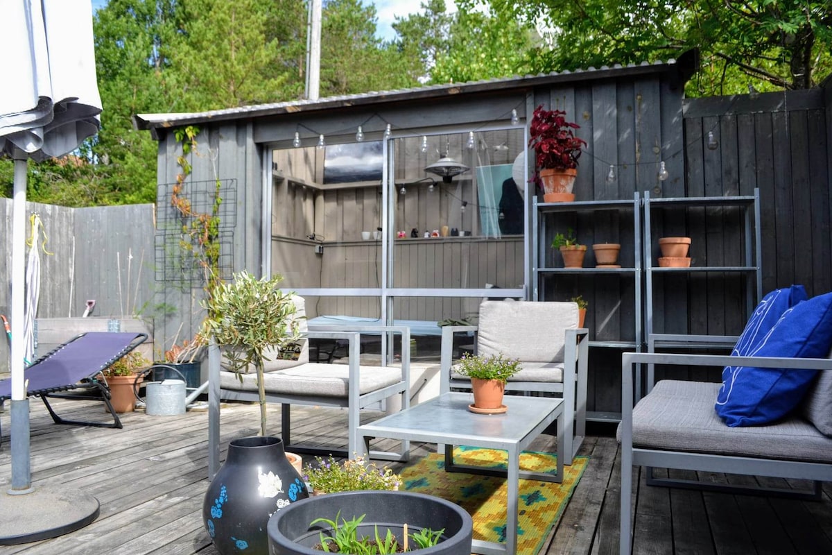 Aquí vives a unos 1 km del centro de la ciudad, a unos 250 m de la tienda de comestibles, a unos 1 km de la playa de Randvik con rocas, posibilidades de pesca y playa. La residencia tiene 2 dormitorios con camas dobles y 1 habitación para niños con una cama de rociador y la posibilidad de configurar una cuna de viaje adicional. La casa es adecuada para un máximo de 4 adultos y 2 niños pequeños. Tienes el sol de la mañana en el porche en la parte delantera de la casa y el sol por la tarde/noche en el porche en la parte trasera de la casa. Parrilla de gas en el porche. Bueno con espacio de estacionamiento y cargador de autos eléctricos en el garaje.