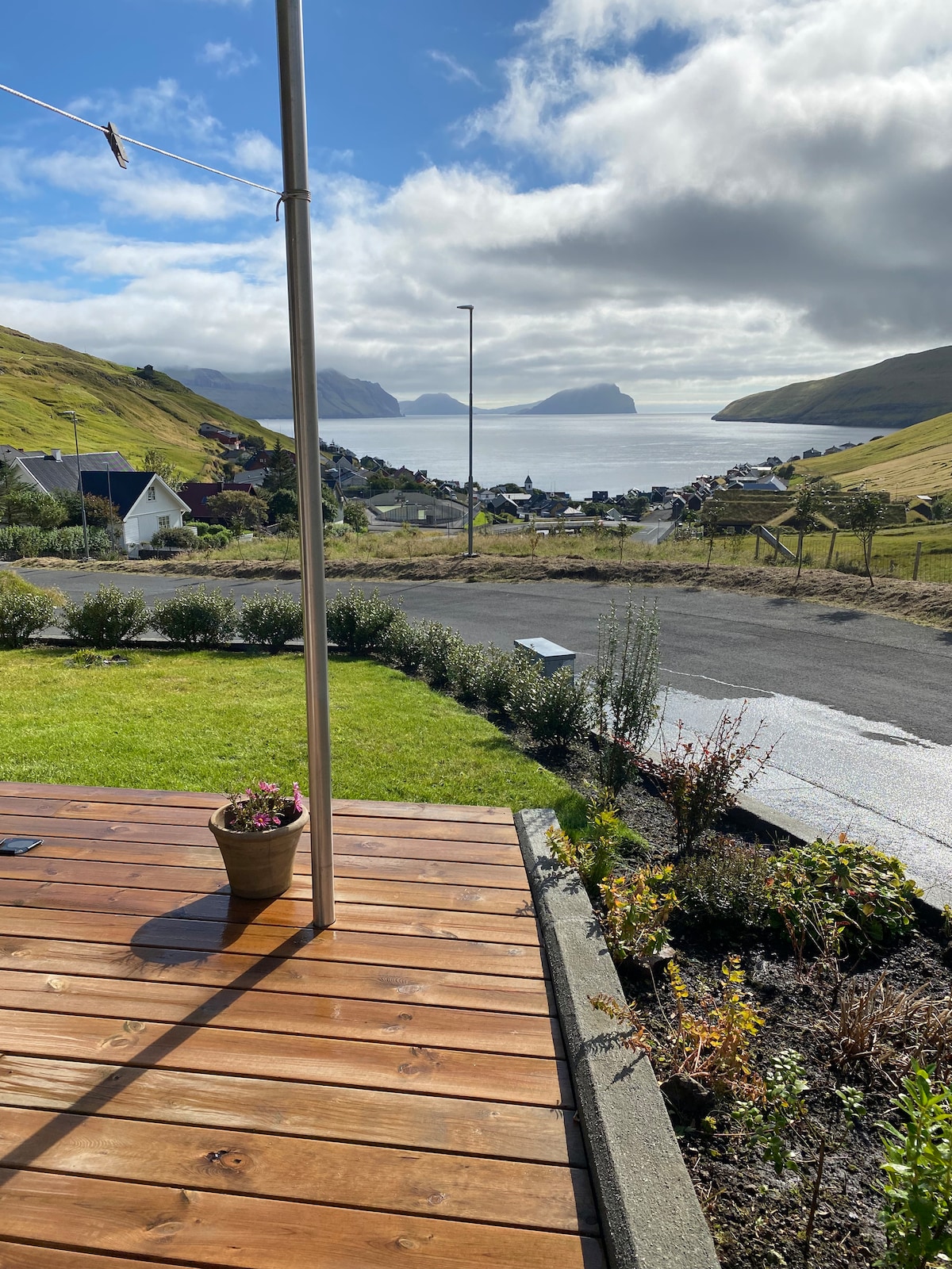 Large, peaceful apartment in the middle of the Faroe Islands. Geographically central. The longest distance by car is approximately 1 hour's drive. 6 of the islands are connected by tunnels and bridges. It is about 15 min to Tórshavn through the new underwater tunnel. Quiet village by the sea. Nice view from the livingroom. You will love my home because of the peace, the view and the surroundings.