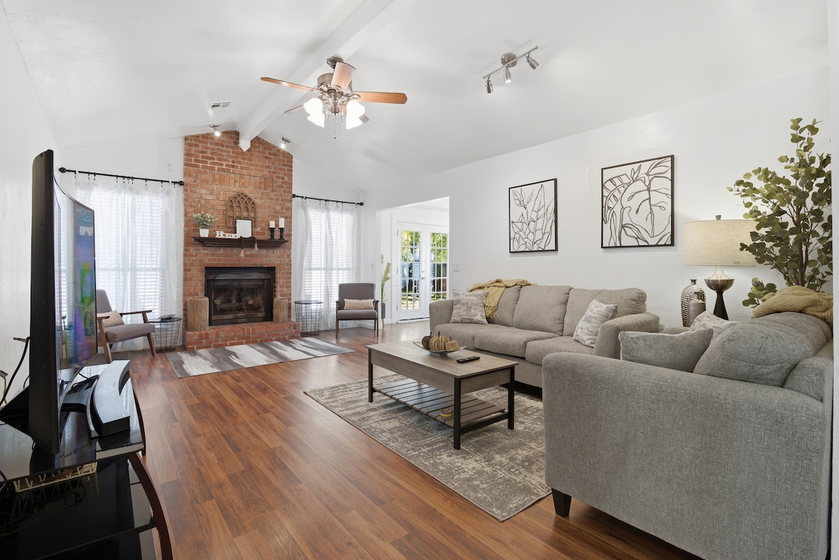 El bungalow es una casa de dos dormitorios y un baño renovada y decorada profesionalmente con garaje y lavandería. La cocina moderna cuenta con una cocina de gas, totalmente equipada con platos, ollas y sartenes, y electrodomésticos esenciales. También se proporcionan artículos para el desayuno. Tres televisores con YouTube TV, Prime TV y Netflix proporcionados por el anfitrión. Los dormitorios tienen una cama tamaño queen nueva y un sofá en el salón para un máximo de 5 personas más un corralito para los más pequeños. Disfruta de una terraza amueblada y un lugar para hacer fogatas.