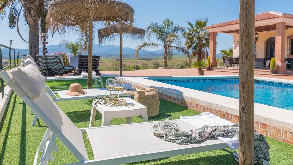 Tous les membres du groupe se sentiront chez eux dans ce logement spacieux et unique. Cette propriété en pleine nature possède de superbes vues (dont une superbe vue sur le chateau et le village d'Alora) et entièrement équipée, avec piscine, jacuzzi, sauna. La villa permet d'accueillir six personnes dans les 3 chambres. Elle a été entièrement rénovée en 2022 et permet des séjours paisibles à la campagne, à 2 kilomètres du charmant village d'Alora.