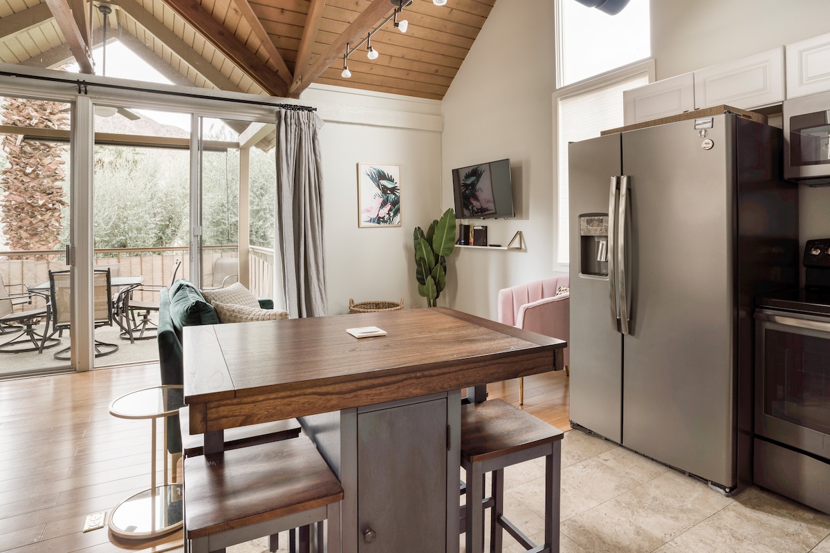 Estudio recién remodelado en Indian Wells. Relájate y recarga las pilas enclavado en las faldas de las montañas de Santa Rosa. La iluminación natural, los techos altos abovedados, el espacio del patio abierto y la decoración relajada te harán experimentar realmente el estilo de vida del centro vacacional por el que el valle de Coachella es más popular. Este estudio tiene dos camas plegables que se bajan de las paredes para maximizar el espacio cuando no están en uso. ¡Disfruta de las piscinas públicas, las vistas a la montaña y el estilo de vida del centro vacacional que te ofrece esta escapada!