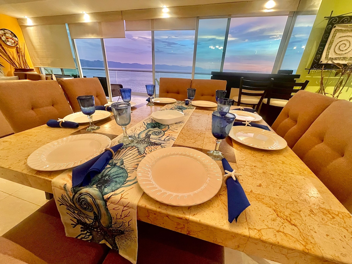 This amazing 3 bdrm, 3.5 bath aptm is on corner of the 8th floor of the oceanfront-beach access sayan Beach which has the best rooftoop in all puerto vallarta, There are big white marble floors throughout the Apartment with surround bose sound, high speed internet, 4 tvs, Dish Usa, Vitra and RH furniture, spectacular views to the bay and los muertos beach, the building has 3 pools on the lobby plus an infinite pool on the rooftop, 2 jacuzzies, sauna room, massage room, and paddle tennis court.
