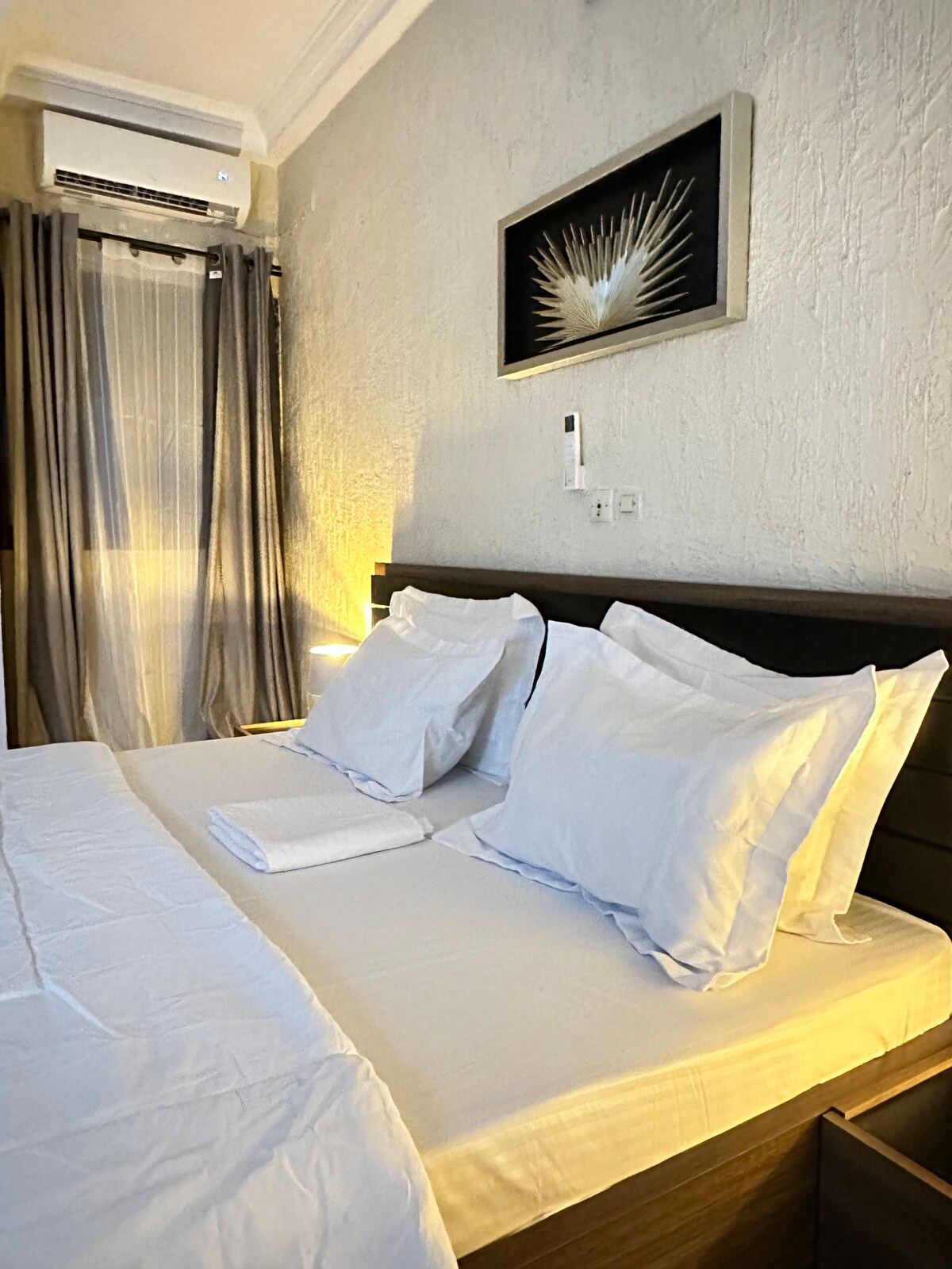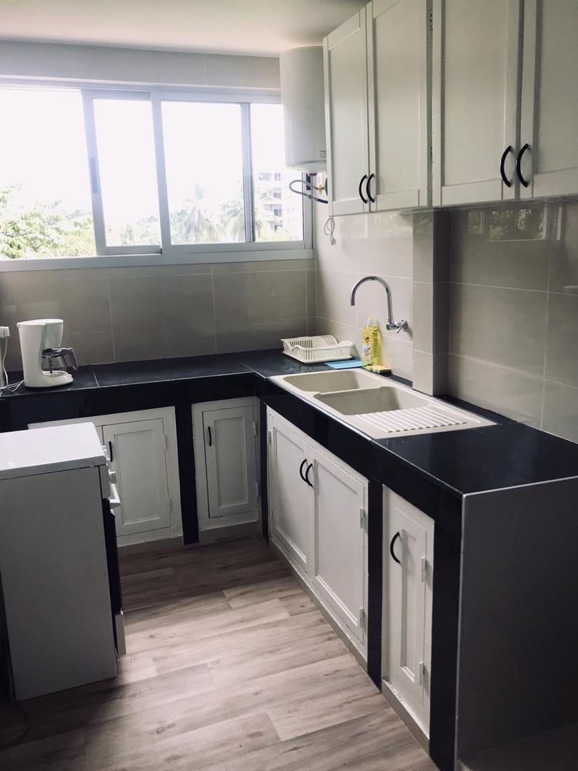 ★ ”..Alains Apartm. is well situated, he is a care taking..” Hortense ☞ 32” HDTV ☞ 50MBs Wi-Fi ☞ 7/7 Security Guard ☞ Water cooker for hot showers ☞ Air-Conditioner ☞ Free Parking » 9min drive to Kafolo Lagoon » 7min drive to Carrefour market » 30min drive to Airport Add my listing to your wishlist by clicking ❤️ the in the upper-right corner. If you have a 2+ reservation, you will need to use more furnitures than the bed. Don't worry we will show you how to use the other sleeping places.
