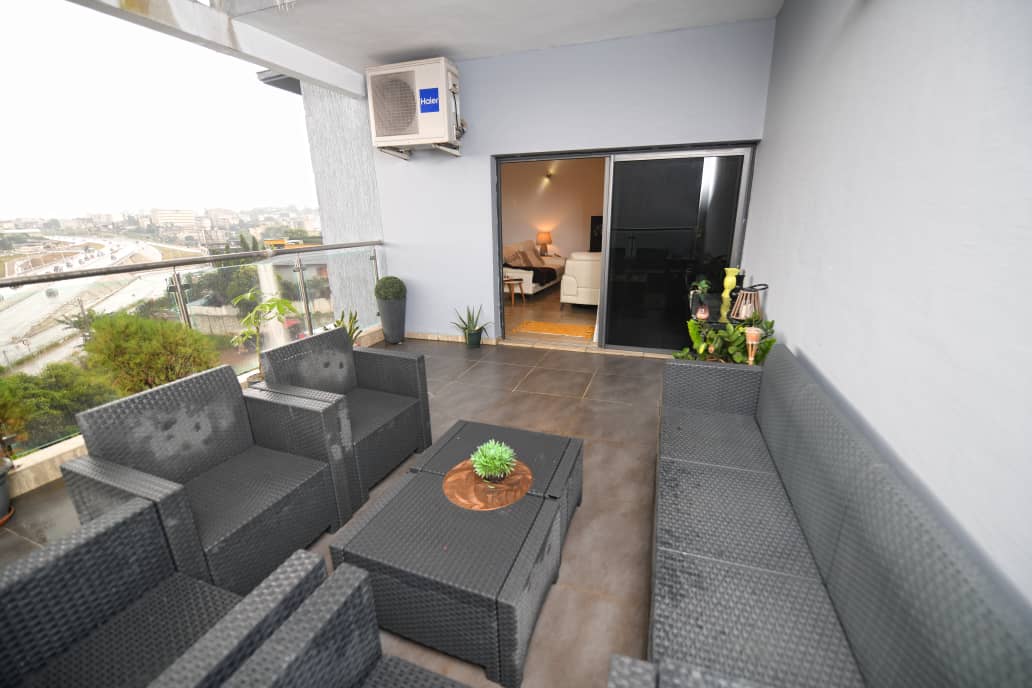 Situé en plein cœur d'Abidjan et près de toutes les commodités, cet appartement de trois pièces (2 chambres autonomes + salon), est idéal pour vos séjours d'affaires ou des vacances en famille. Il se distingue par son aménagement moderne et élégant, alliant style et confort. Les finitions haut de gamme, la décoration soignée et les équipements modernes (cuisine équipée, Wi-Fi rapide, télévision connectée, etc.) vous offriront une expérience inoubliable.