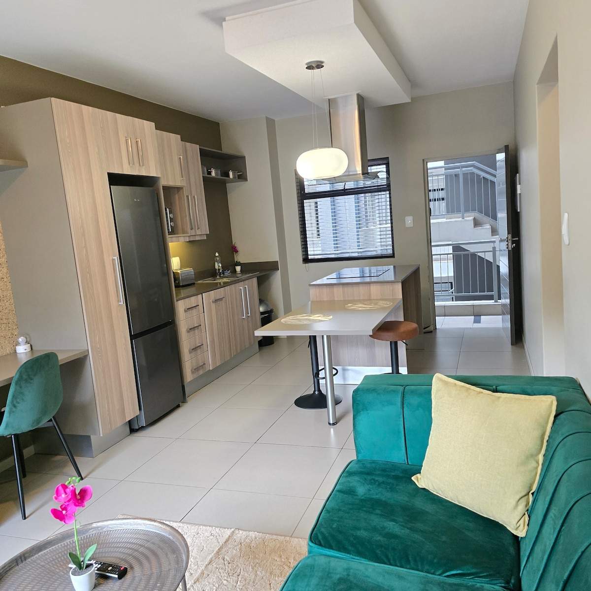 Te damos la bienvenida a tu refugio sereno en el suburbio acomodado de Byranston, en Sandton. Ubicado en el exclusivo desarrollo Akaru Bryanston en Sandton, este elegante departamento de un dormitorio con balcón, lavadora, lavavajillas y electrodomésticos de cocina SMEG, baño con bañera y ducha, energía de respaldo ofrece una mezcla perfecta de diseño contemporáneo, comodidad refinada y cálida hospitalidad. Ya sea que estés de visita por negocios, ocio o vacaciones, este espacio está cuidadosamente preparado para mejorar tu estadía.