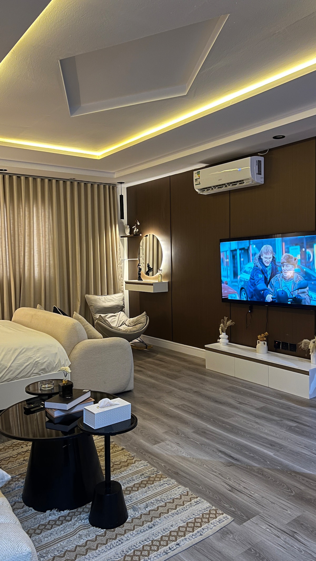 Este lugar único tiene un estilo propio, diseñado para ofrecer comodidad, elegancia y un toque de lujo. Cada habitación está cuidadosamente amueblada con una decoración elegante y acabados de alta gama. Disfruta de servicios de primera calidad que incluyen una experiencia de cine VIP, televisores de pantalla plana QLED, máquinas de té/café, secadores de pelo, toallas suaves y un paquete de bienvenida de cortesía. Ya sea que estés aquí para una escapada corta o una estancia más larga, te sentirás como en casa con nuestras comodidades modernas y toques personalizados.