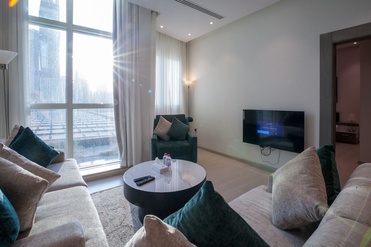 Super Luxury One-Bedroom Apartment – Al Aqiq, RiyadhEnjoy a comfortable stay with modern amenities including free WiFi, a 24-hour front desk, room service, and a garden. Each air-conditioned unit features a kitchenette, balcony, washing machine, streaming TV, and luxury toiletries.Conveniently located just 14 mi from King Khalid International Airport and close to Riyadh Park, Riyadh Gallery Mall, and Diriyah Historical Area and very to KAFD tower.
