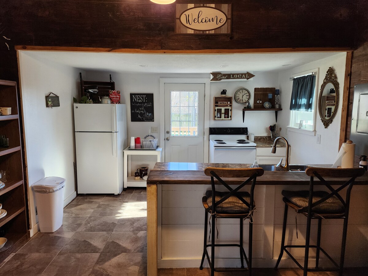 ¡Alójate en un rancho de ganado de 600 acres! Esta litera recientemente renovada ofrece una acogedora estancia de concepto abierto decorada con hallazgos históricos de ag/rancho. La cabaña de una habitación cuenta con una cama matrimonial, cuatro camas individuales, un inodoro y ducha separados, una gran mesa de comedor, cocina completa y porche al atardecer con parrilla y asientos. Desliza la puerta del granero para disfrutar de las brisas nocturnas y recoger fruta directamente de los árboles que rodean la cabaña. Si estás buscando una escapada a un rancho de verdad, ¡este es tu lugar!