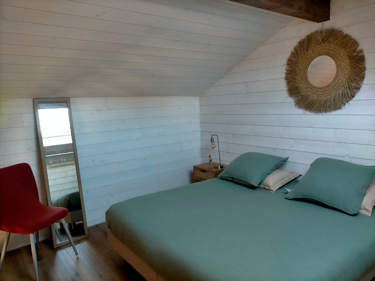 Encantadora casita independiente, que consta de 1 gran sala de estar con sofá cama, 1 cocina totalmente equipada con bar, horno, lavavajillas, nevera congelador, microondas, 1 dormitorio en altillo abierto al salón con 1 cama de 160, 1 cuarto de baño con ducha y aseo. TV de pantalla plana, reproductor de DVD, canal hi fi, juegos de mesa, libros, cd, dvd, lavadora. WiFi Terreno arbolado. Entorno tranquilo y bucólico... Hermosa terraza con parrilla, muebles de jardín. Cama hecha a la llegada.