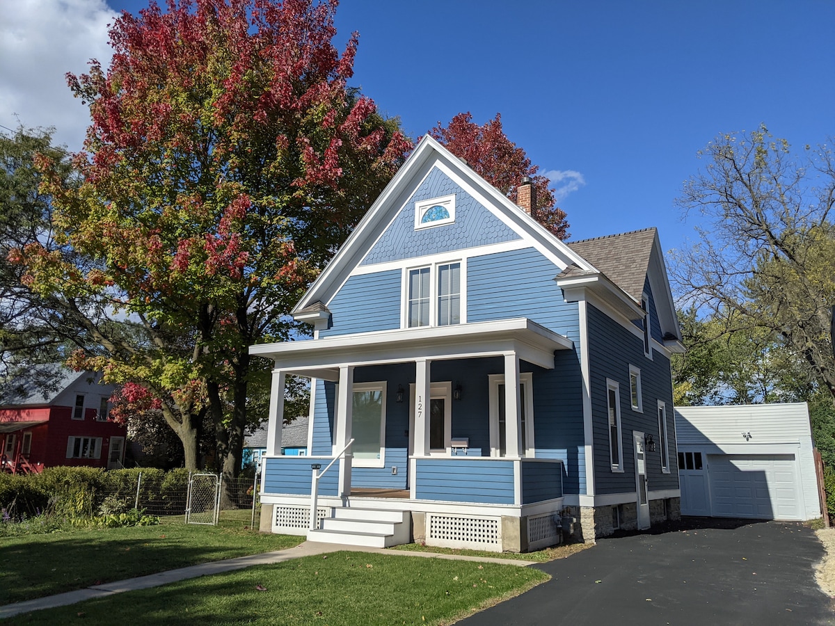 Encantadora casa a 1 manzana de St. Marys Hospital, Rochester, Minnesota. Cuenta con 4 dormitorios (3 tamaño king, 1 completo), cada uno con televisores montados en la pared y 2 baños completos. Cocina totalmente equipada, comedor independiente con capacidad para 8 personas y acogedora sala de estar con secciones de cuero italiano y chimenea de leña. Nuevo patio al aire libre con juego de comedor de 8 asientos y parrilla Weber. Calefacción y aire acondicionado nuevos para tu comodidad durante todo el año. Perfecta para familias, grupos o estancias prolongadas.