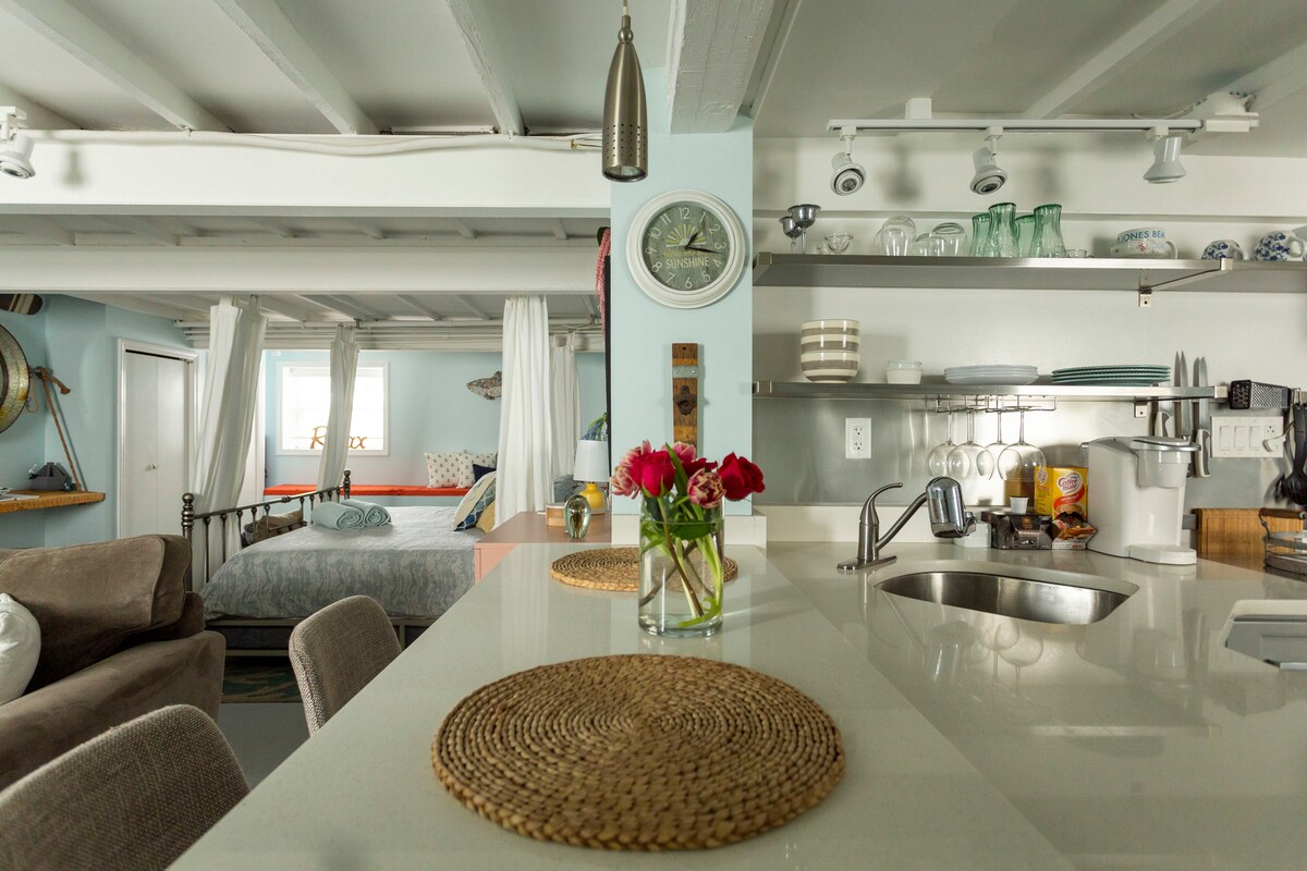 Inspirado en una pareja de viajeros que buscan experiencias memorables. Te invitamos a disfrutar de un poco de romance junto al mar. Una cala tranquila junto al mar espera a aquellos que buscan privacidad, proximidad al mar y estilo, todo en uno. Este luminoso estudio completamente nuevo tiene todos los detalles que has estado esperando. La playa, los mercados y las tiendas están a pocos minutos. Un viaje en coche de 5 a 10 minutos te llevará a la mayoría de las atracciones locales de Long Beach.