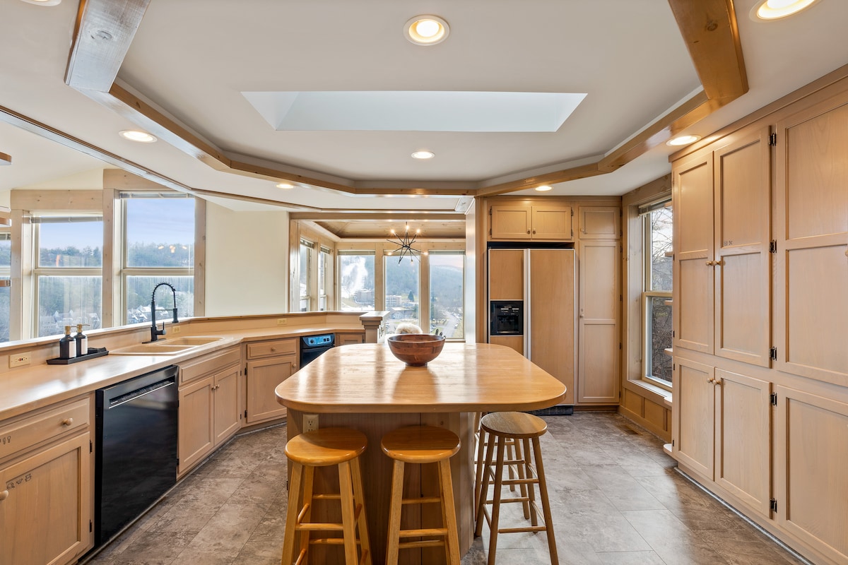 “Chateau Jolene” es un chalet decorado por diseñadores en el corazón de Massanutten con una terraza inigualable, que incluye un jacuzzi, una sauna de barril de cedro, una mesa de fuego, un comedor para 10 personas y vistas a la cresta de la montaña. En el interior, te encantará la moderna sensación de casa del árbol del gran salón inundado de luz y la cocina totalmente equipada con electrodomésticos nuevos. Las habitaciones son amplias y modernas, incluida la principal con excelentes vistas desde la pared de ventanas. Además, ¡admite mascotas! Administrado por New School Hosting.