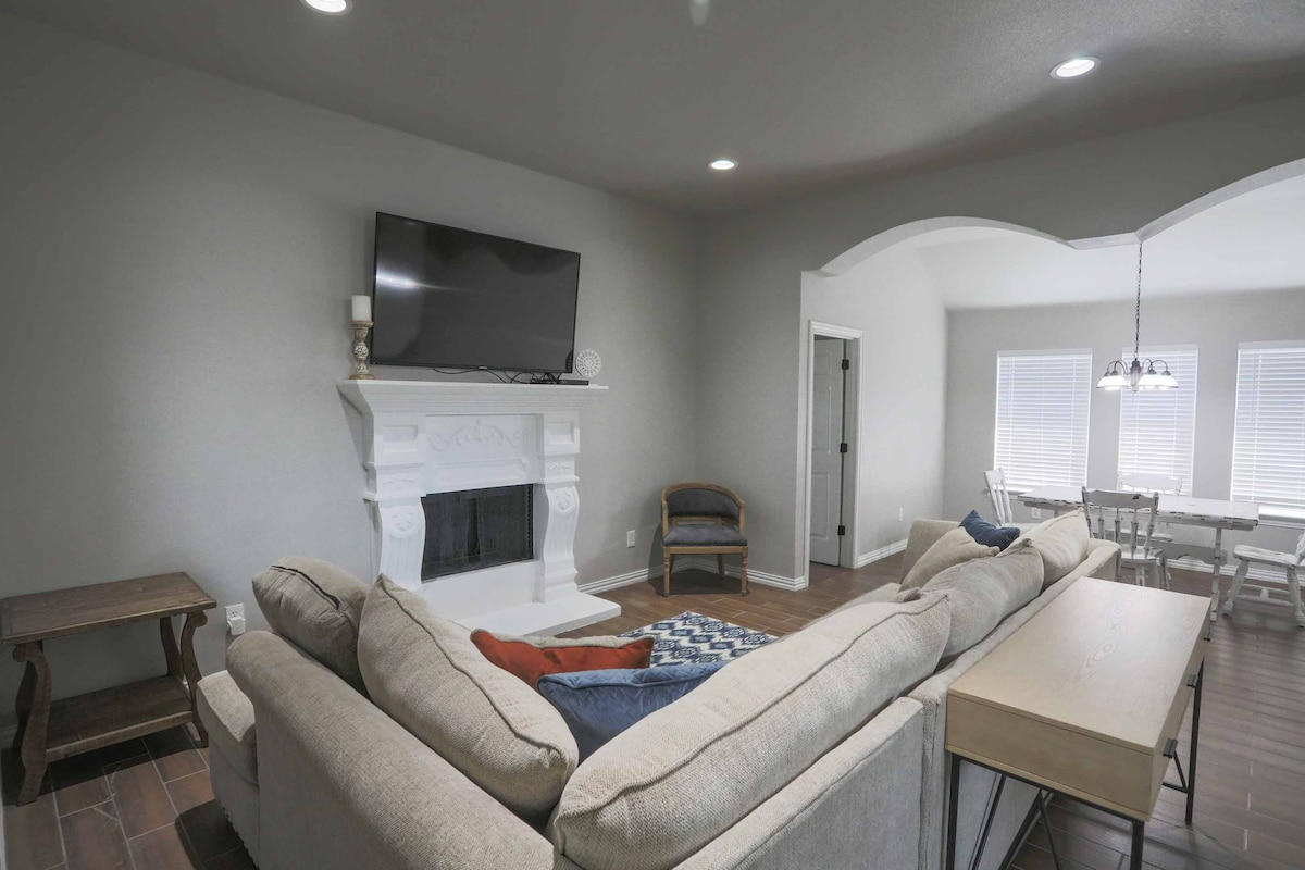 ¡Bienvenido a tu escapada tranquila! Ubicada en un barrio tranquilo y familiar de nueva construcción, esta acogedora casa está a pocos pasos de la piscina comunitaria. Disfrutá de la diversión en el interior con futbolín, billar, hockey de mesa y juegos de mesa. Se proporcionan refrigerios y café de cortesía. Relajate en el patio al aire libre con parrilla, comedor y chimenea, perfecto para noches bajo las estrellas. Ideal para estadías largas o cortas, este alojamiento ofrece comodidad, entretenimiento y relajación para todos.