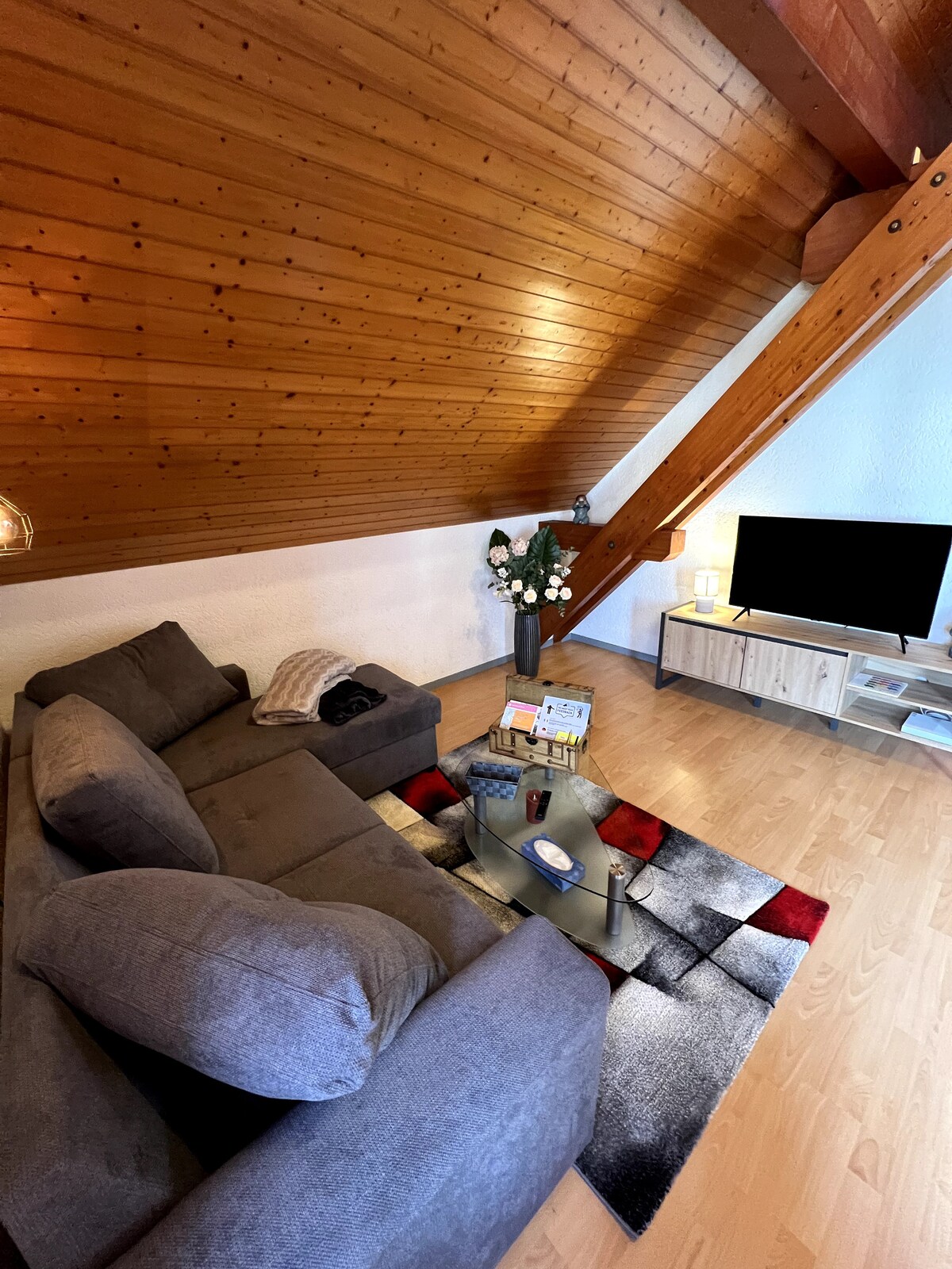 Ático luminoso y familiar cerca de los servicios (Migros, Denner, Coop Pronto, Bares y Restaurantes, Casco antiguo de Porrentruy) a menos de 5 minutos a pie. En las inmediaciones del jardín botánico y del nuevo museo Jurassica, este remanso de paz le llenará para una estadía agradable y con todas las comodidades. Local anexo privado accesible para recarga de bicicletas, secado de la ropa y almacenamiento de todo tipo. ¡Estacionamiento privado ilimitado!