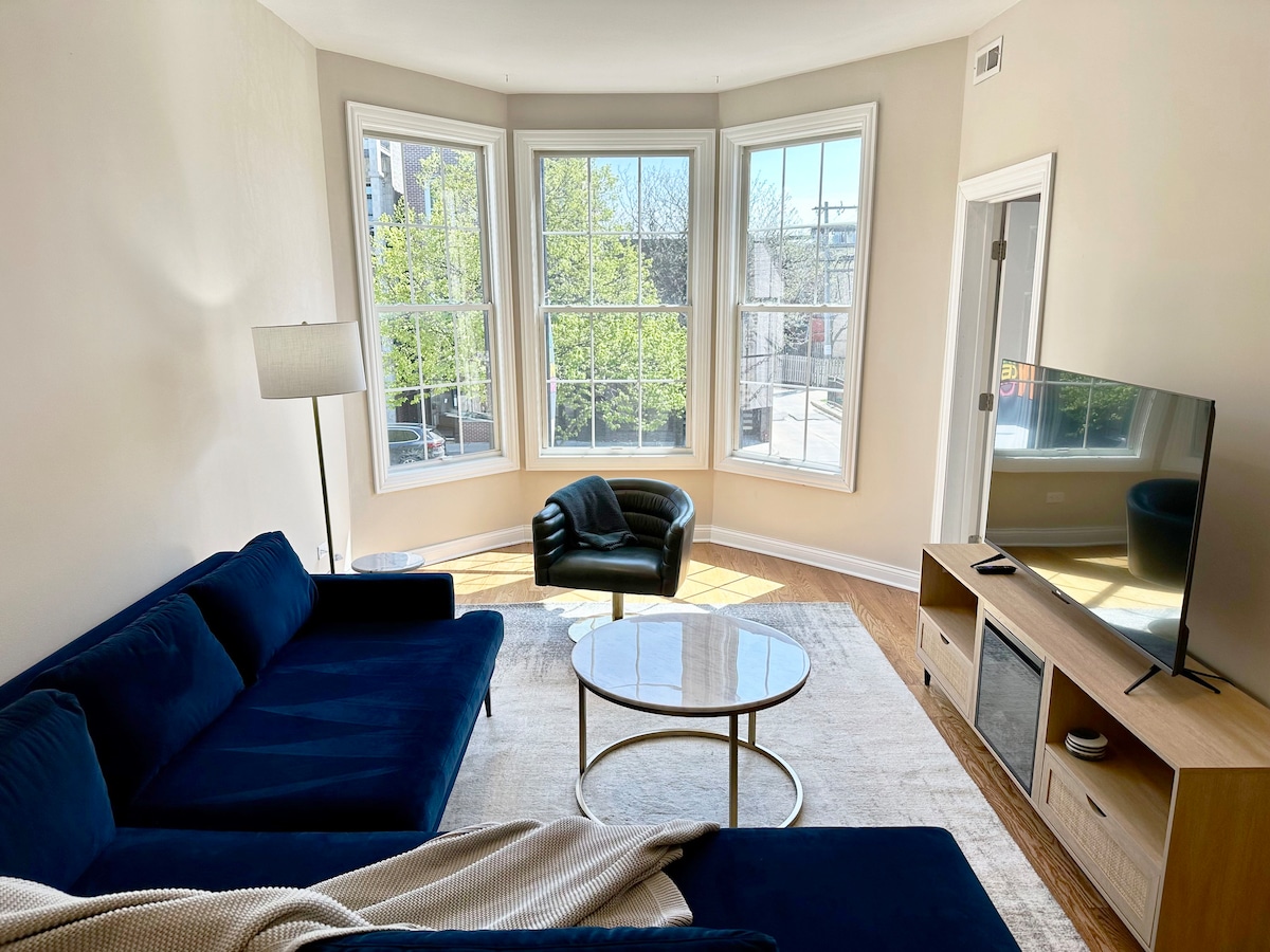 TENÉLO TODO en W3A Chicago Wrigley Field/Boystown/Lakeview - Recientemente renovado, como nuevo, en East Lakeview, seguro y céntrico. - A 10 minutos a pie de Wrigley Field, Boys Town, playas, supermercados, restaurantes con cenas nocturnas. A 5 minutos a pie de la línea roja del metro Sheridan (directo al centro), estacionamiento privado cerrado a $10/noche y/o permisos gratuitos para estacionar en la calle - Sábanas de 600 hilos, almohadas suaves y esponjosas, batas de casa, wifi de alta velocidad, parlantes Sonos, diseño elegante y lavarropas y secarropas en la unidad
