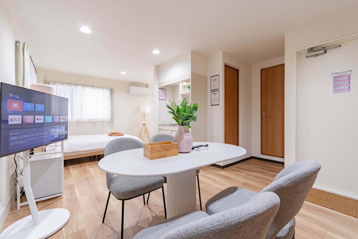 Estudio Japandi tranquilo y nuevo|Cerca de JR・Subway|Lavado y secado todo en uno|Ascensor|Almacenamiento de equipaje