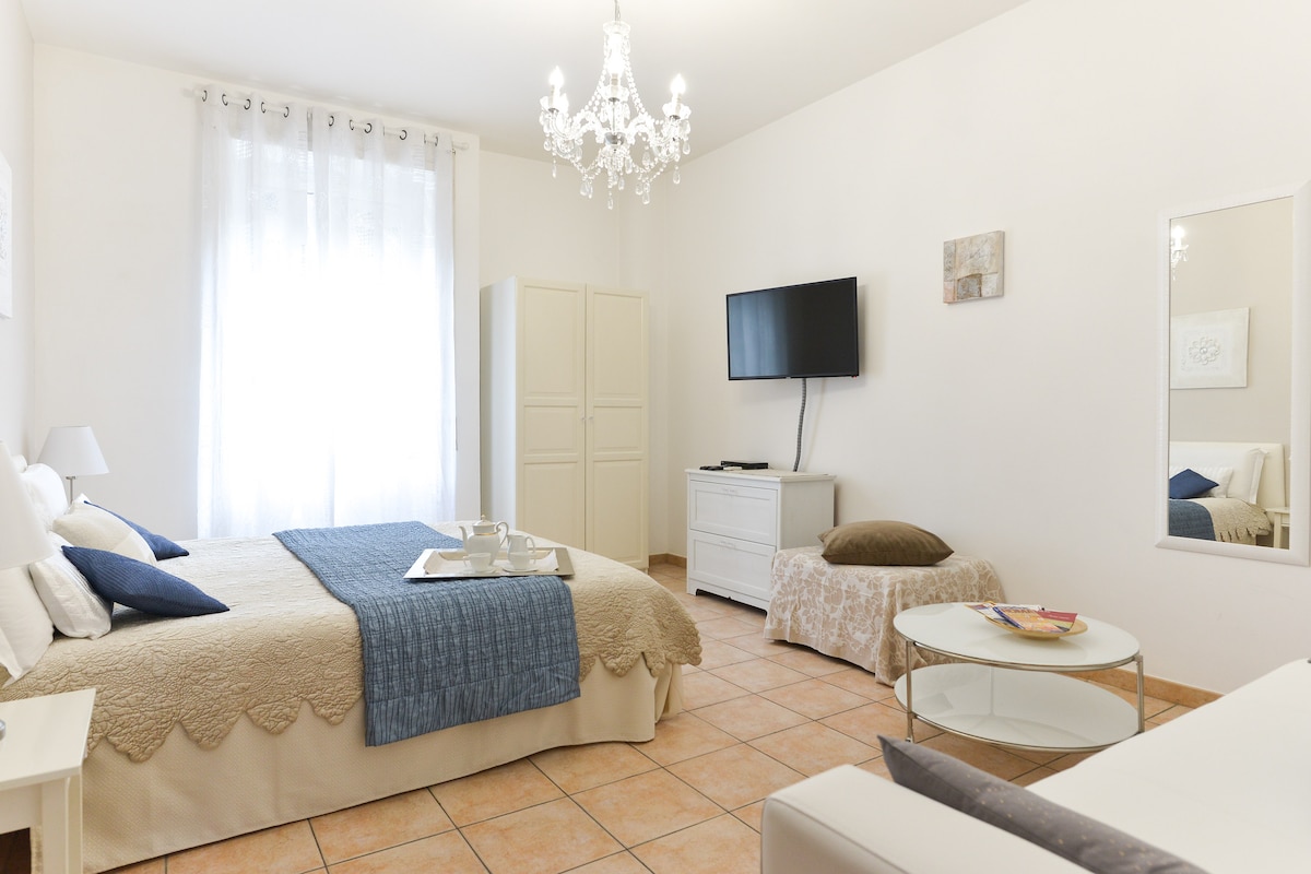 Espléndido apartamento recién reformado junto a la estación de Tiburtina. Una pequeña joya en el último piso lleno de sol y con unas vistas impresionantes. Equipado con todas las comodidades: aire acondicionado, calefacción independiente, ducha grande, lavadora y cafetera nespresso de última generación, tostadora y hervidor de agua. Colchones y almohadas nuevos. A pie se puede llegar a estancos, supermercados, farmacias, bares y restaurantes. Bajo petición, cuna, cochecito y otros accesorios para niños (gratis)