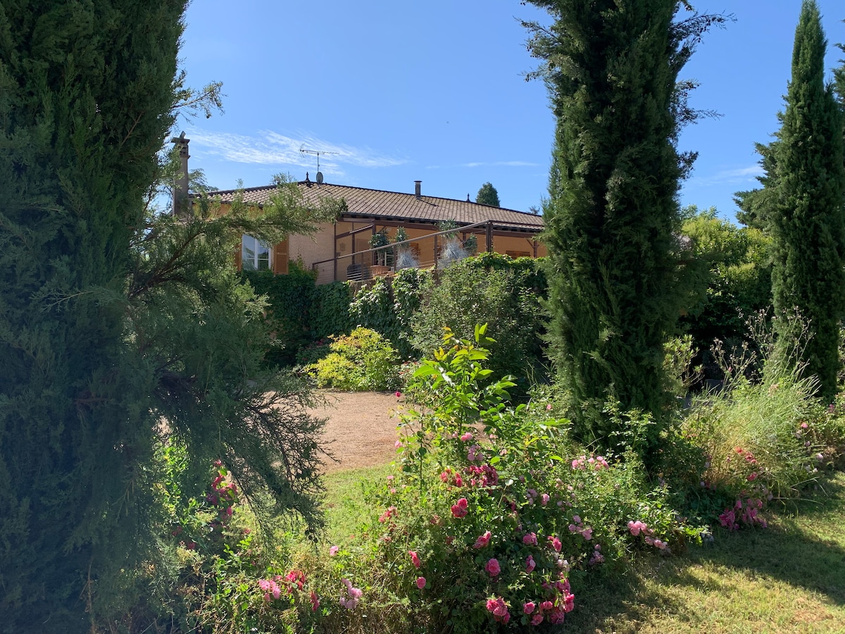 Ideal para pasear en bicicleta, a pie o para pescar... Al pie del Beaujolais, a 850 m de las orillas del Saona y de un lago. Estudio equipado para no fumadores de 35 m² con terraza, Wi-Fi, aire acondicionado, en el piso de arriba de mi casa (acceso independiente). Consta de un dormitorio (cama de 160x200), una sala de estar/cocina equipada con un sofá, un baño. Prever un suplemento de 40€ para la limpieza de fin de estancia si no quiere encargarse de ello, de lo contrario hay todo lo necesario en el lugar