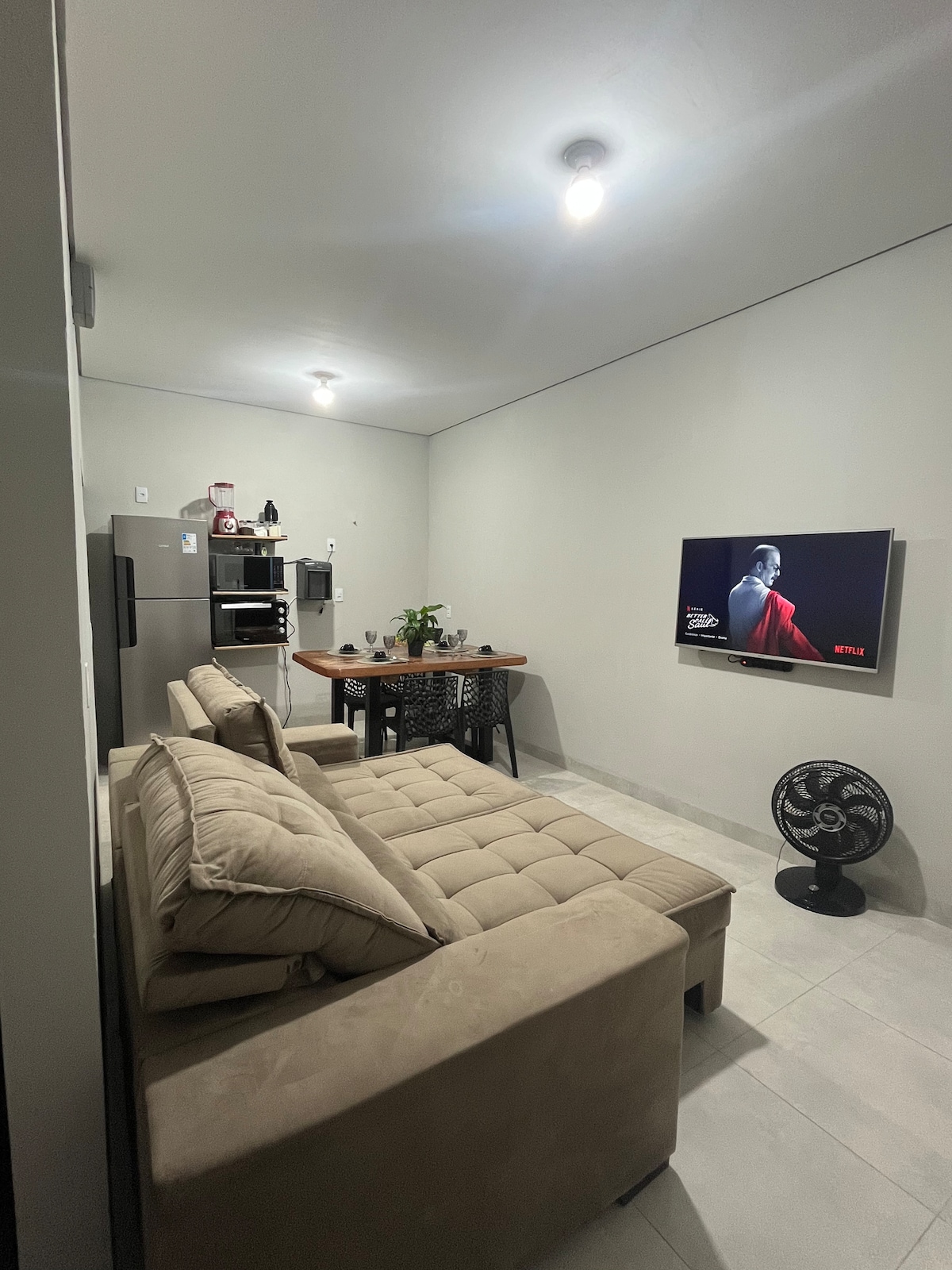 Cerca del centro de la ciudad. Cerca del mercado ASSAÍ Da médici. Cerca de la facultad Anhanguera. Cerca de la panadería. La casa cuenta con cocina completa, 1-Habitación con Aire, ventilador de techo. TV-50 pulgadas, mesa de trabajo. Wi-Fi. Baño, ducha eléctrica, espejo. Sala de estar con sofá de 3 plazas, mesa, 4 sillas. Garaje para 2 coches. Incluye agua, luz, gas, internet. La casa tiene 1 cama doble. Para más de dos personas ofrecemos un colchón individual.