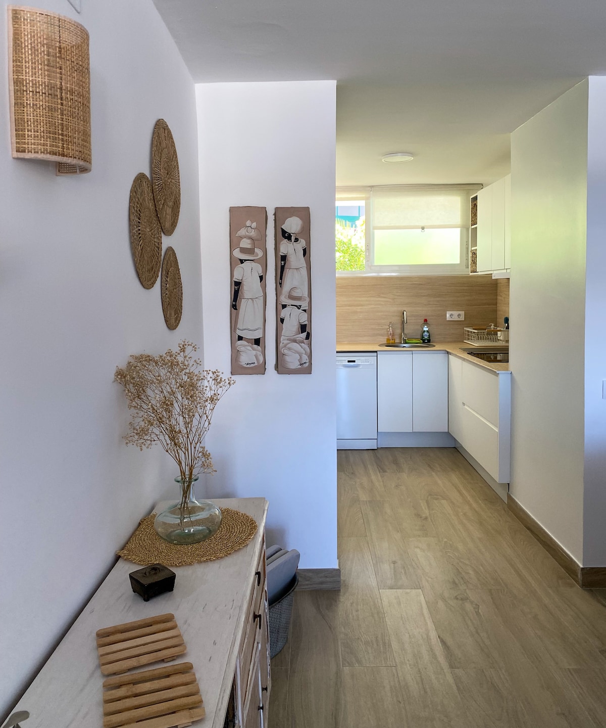 Imagina alojarte en una casa a tan solo 10 min caminando de la playa, dentro de una urbanización tranquila, rodeada de árboles y con el canto de los pájaros como banda sonora…especialmente por la noche, cuando el silencio es total. Nuestra "Casa Verde" es la última de la calle, sin vecino en uno de los lados, lo que garantiza aún más paz e intimidad. El salón, amplio y ventilado, es el corazón de la casa: sus ventanas son auténticos “cuadros vivos” del bosque que la rodea.