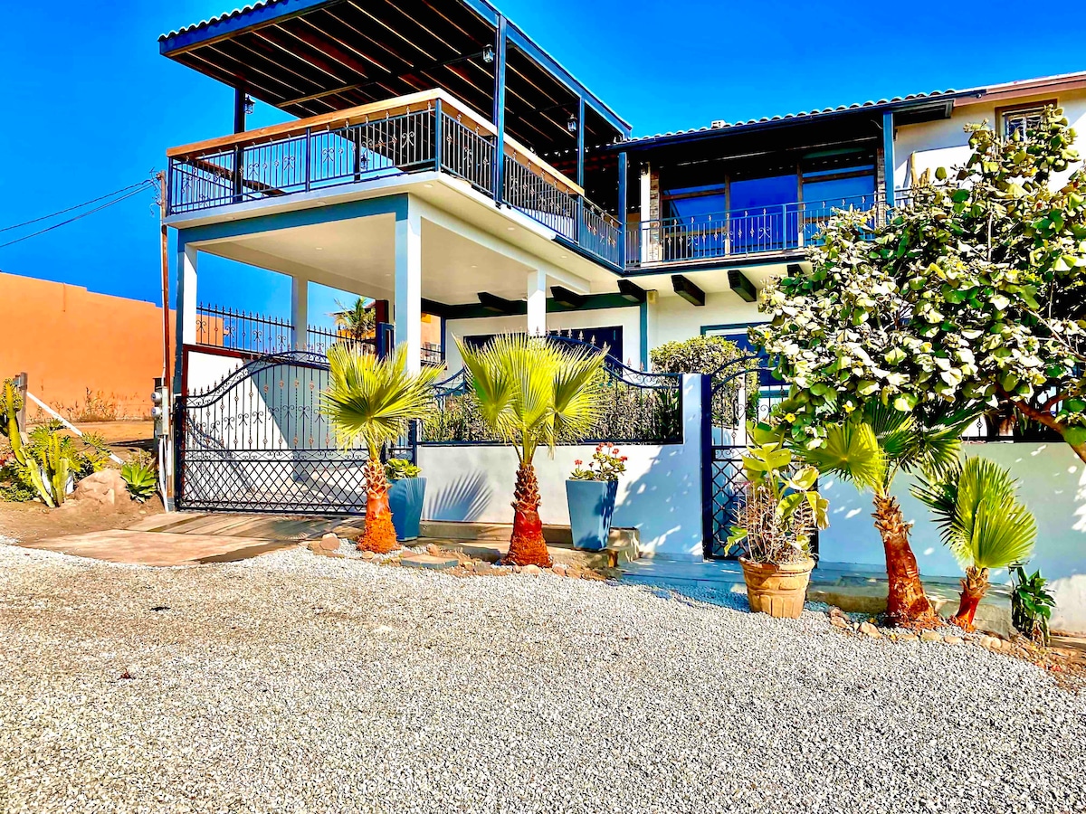 Residencia de lujo con 7 habitaciones, todas con baño privado, ideal para quienes buscan comodidad y privacidad. La mayoría de los dormitorios ofrece vistas al mar y acceso exclusivo a una casa completa de cuatro niveles. Incluye internet de alta velocidad, agua caliente ilimitada y estacionamiento privado para hasta 6 autos. Ubicada a 10 minutos en auto del centro de Rosarito y Papas & Beer, a 30 minutos al sur de Ensenada y a solo 5 minutos en auto de la playa.