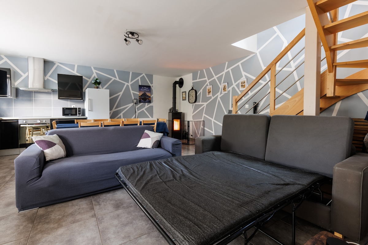 Ideal para familias, la casa tiene capacidad para 4 personas. En la planta baja: cocina equipada (placa vitrocerámica, horno, microondas, lavadora, lavavajillas, estufa de leña). En la planta superior: TV, cuarto de baño (ducha, lavabo, toallero eléctrico, inodoro). Calefacción eléctrica incluida Para dormir: un dormitorio (una cama de 140 cm x 190 cm y una cama nido de 2 plazas). No se proporcionan sábanas ni toallas. La limpieza al final de la estancia es debe realizarlo usted.