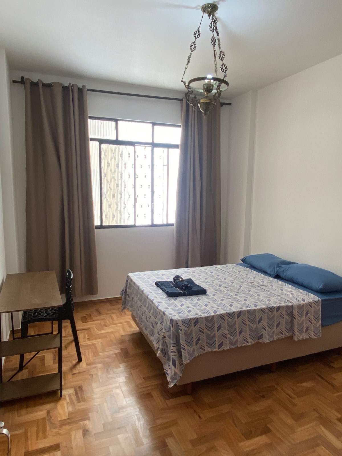 Quarto espaçoso, privativo, fácil acesso, tranquilo e organizado. Somos um espaço completo, aconchegante, e tudo organizado com muito carinho para que todos sinta-se em casa. Um quarto amplo para até 4 lugares com uma cozinha integra, varanda, banheiro, ar condicionado, frigobar, armário e TV. Bairro residencial e tranquilo, à dois quarteirões da Av. Silva Lobo, uma das principais avenidas de Belo Horizonte com todos os tipo de comércio, farmácias, supermercados, padarias, lojas e bares.