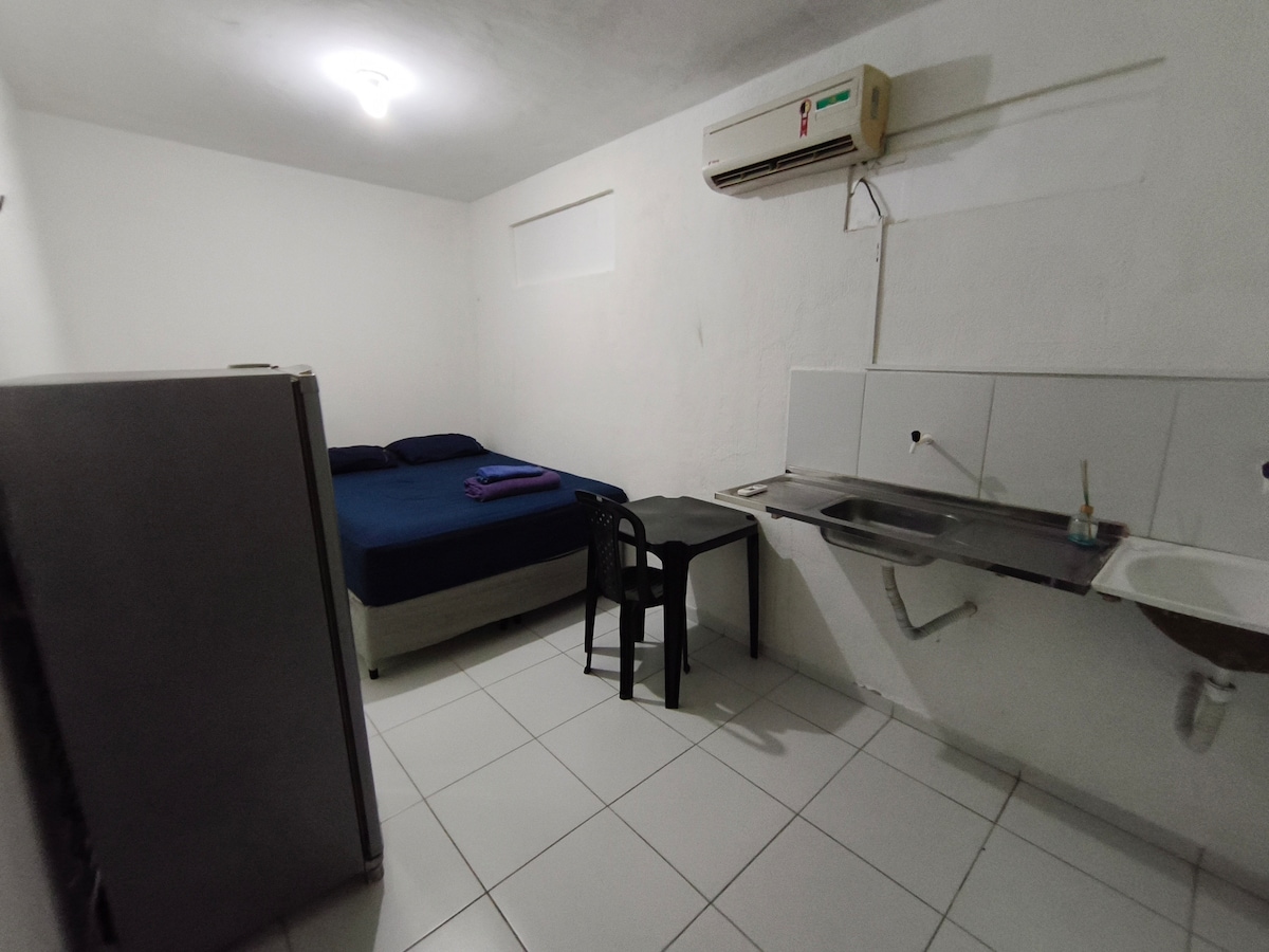 Aeroflats: tu segundo hogar. Departamento funcional, acogedor y privado 301 para parejas. Cerca del aeropuerto, UECE, centro comercial Parangaba, estadio Castelão. Suite equipada con cama doble, aire acondicionado, Smart TV, plancha y baño con ducha eléctrica. Cocina completa con cocina de inducción, microondas, cafetera eléctrica, sándwichera, licuadora, minibar, utensilios domésticos. Ropa de cama y toallas incluidas. Acceso sin restricción de horario. SIN GARAJE