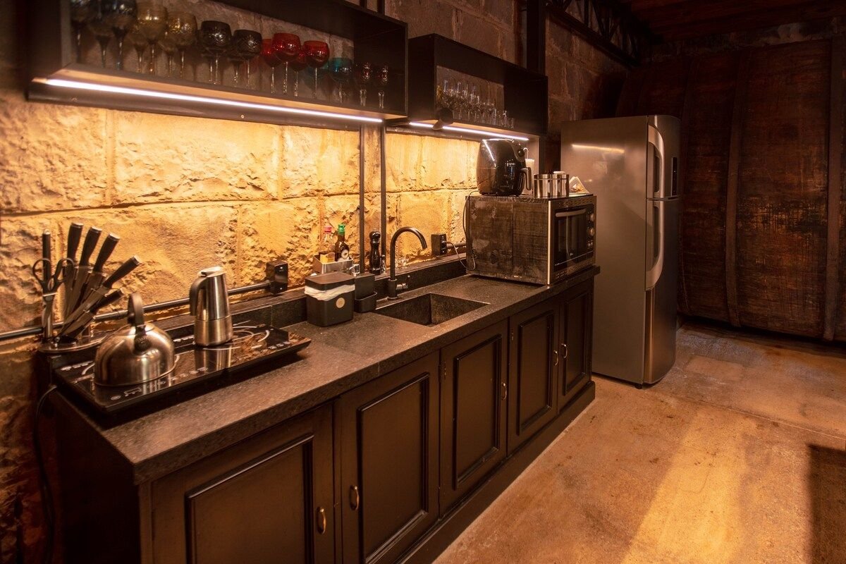 Hospede-se em prédio abrigou verdadeira cantina de colonos italianos em meio à atmosfera daquele tempo porém com conforto e facilidades de hoje. Espaço amplo, gigantescas tinas madeira originais fazem fundo perfeito p/ suas memórias de viagem. Sala aquecida por lareira. Cozinha gourmet integrada. Café da manhã incluso. Quarto mezanino c/ vista para todo o andar térreo equipado por sistema de ar-condicionado quente/frio. Cama dossel e amplo banheiro, banheira de época. bem-vindos @Borgo28gramado