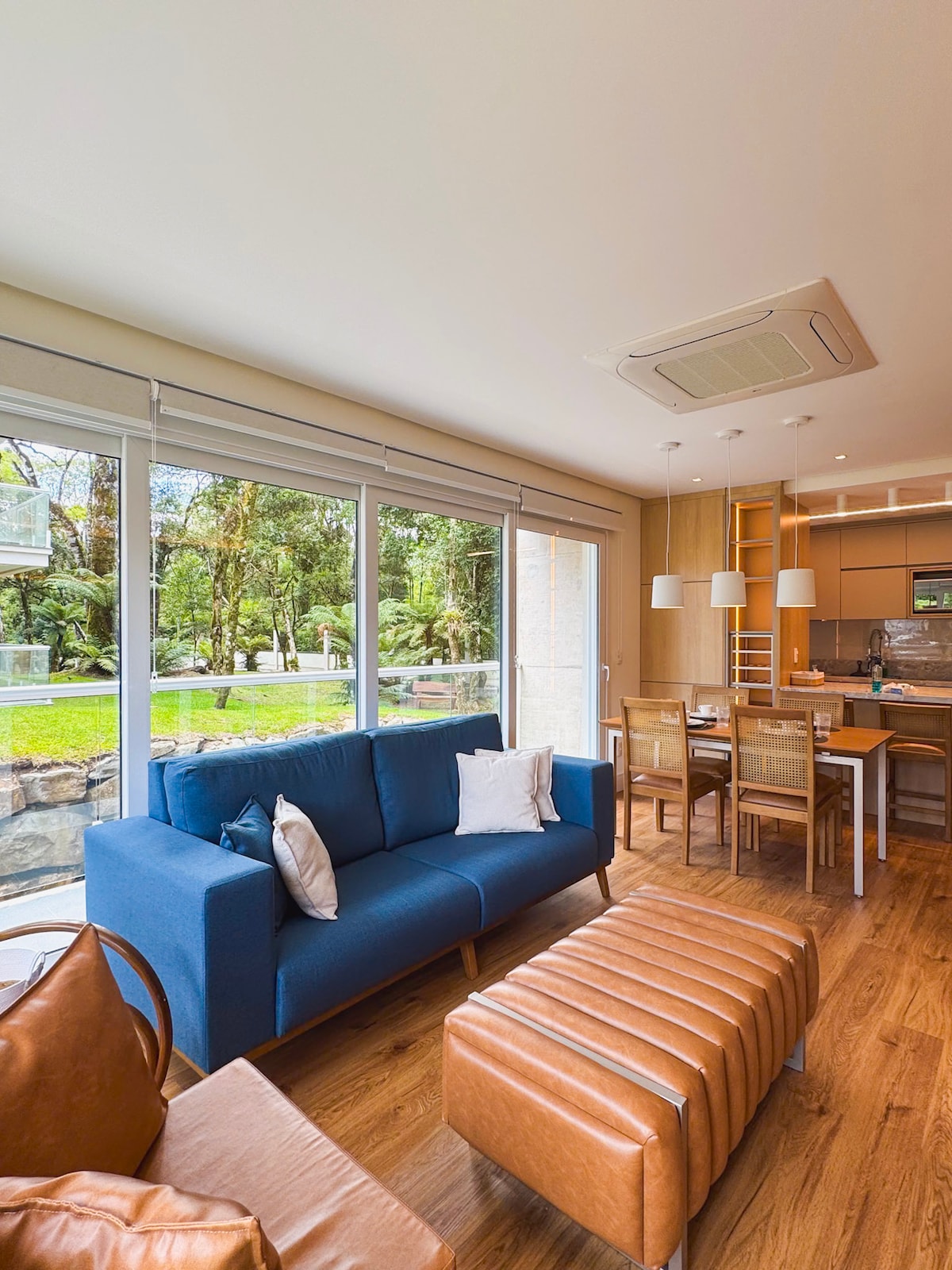 Apartamento muito bem decorado, com lareira, calefação, aquecimento à gás e adega e fica localizado em meio a uma vasta área de mata nativa. A pouco mais de 1Km do centro é possível acessar a "Praça das Etnias", Rodoviária e Rua Coberta com uma caminhada de até 20min. A localização e a estrutura do apartamento e do condomínio permitem tranquilidade e descanso, ao mesmo tempo em que está há apenas a 5min (de carro) da região de bares, cafés, restaurantes e lojas da cidade.