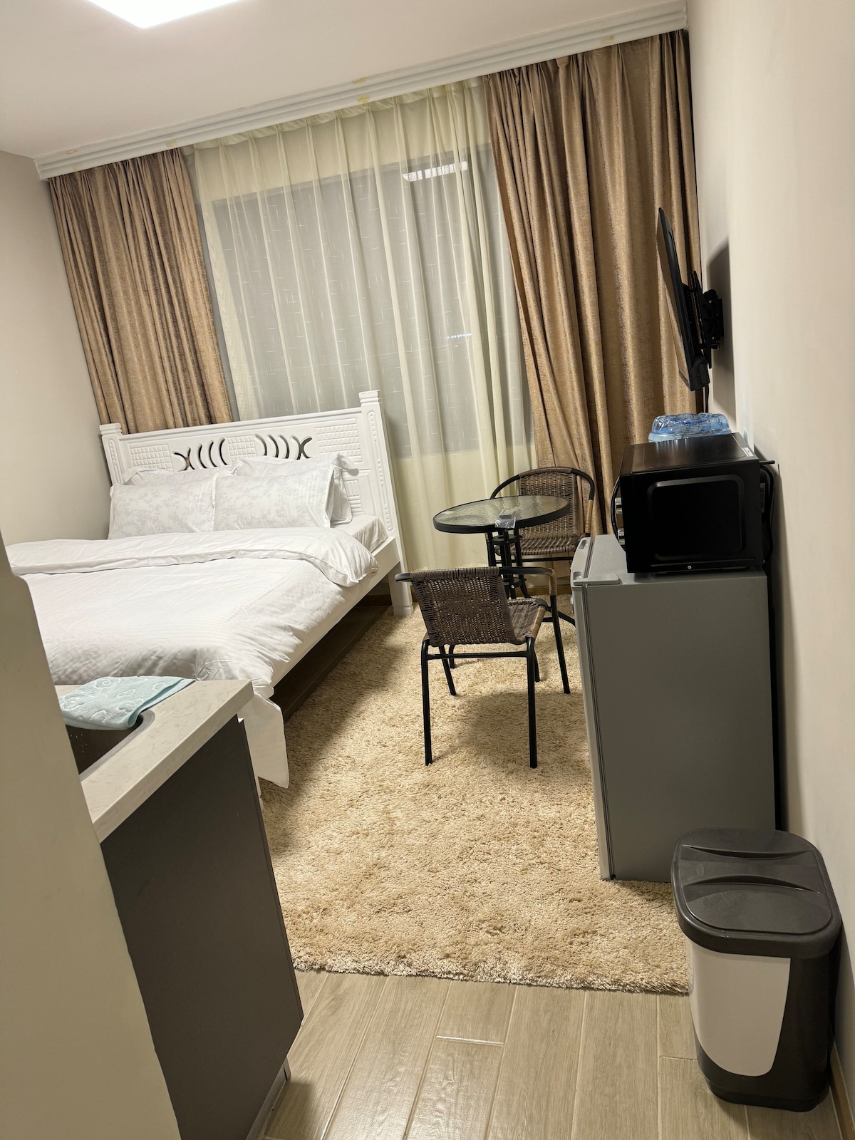 Bienvenido a nuestra nueva y moderna unidad de una sola habitación a lo largo de Limuru Road, cerca de Ruaka. Esta habitación bien diseñada es perfecta para un viajero solo o una pareja que busca comodidad y conveniencia. La habitación tiene una cómoda cama con ropa de cama blanca nítida y un baño limpio, ducha de agua caliente y lavabo. Ofrecemos TV y wifi rápido. También contamos con armario y estacionamiento seguro. Hay una cocina compartida y una zona de restaurantes para que prepares una comida o te mezcles con otros huéspedes. ¡No podemos esperar para hospedarte!