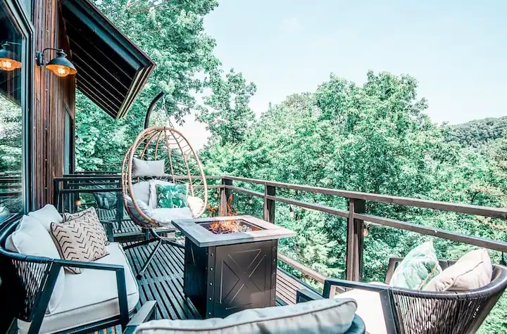 ***2020 Propiedad más deseada en Airbnb en Carolina del Norte*** Da un corto paseo por un camino bien iluminado hasta un oasis en el bosque. Un puente colgante te da la bienvenida a una casa tranquila y acogedora en los árboles, rodeada de laurel nativo y abundantes maderas duras. Escucha a los pájaros mientras tomas el café de la mañana en la terraza o te relajas en el jacuzzi de abajo. La casa se encuentra en 14 acres. Old Fort está a 10 minutos de Black Mountain y a 20 minutos de Asheville.