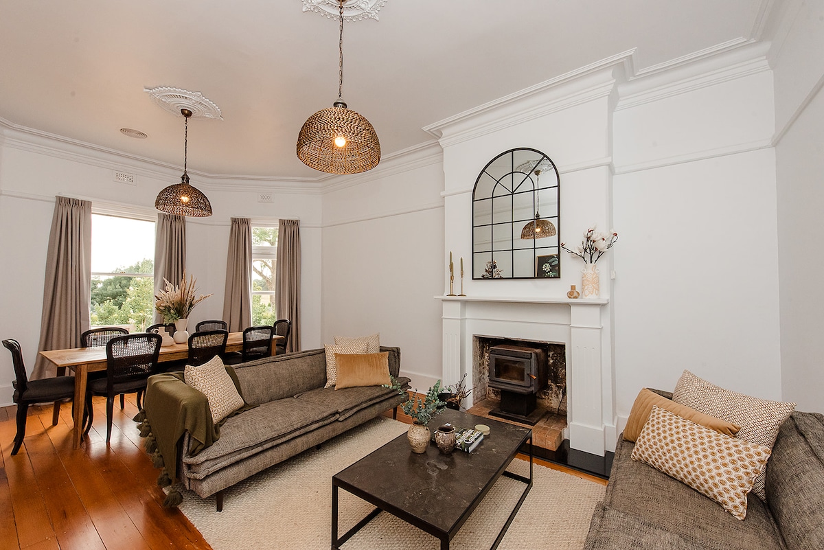 Our secluded Gatehouse is ideal for families or a group of friends looking for an easy high-country getaway. Designed for entertaining in mind, this self-contained house comfortably sleeps up to eight guests across four bedrooms and three bathrooms, with space for two additional guests on a double fold-out couch. Set in the heart of the Rutherglen wine region, The Gatehouse is just five minutes from town, close to cycling trails and some of the region's best wineries.