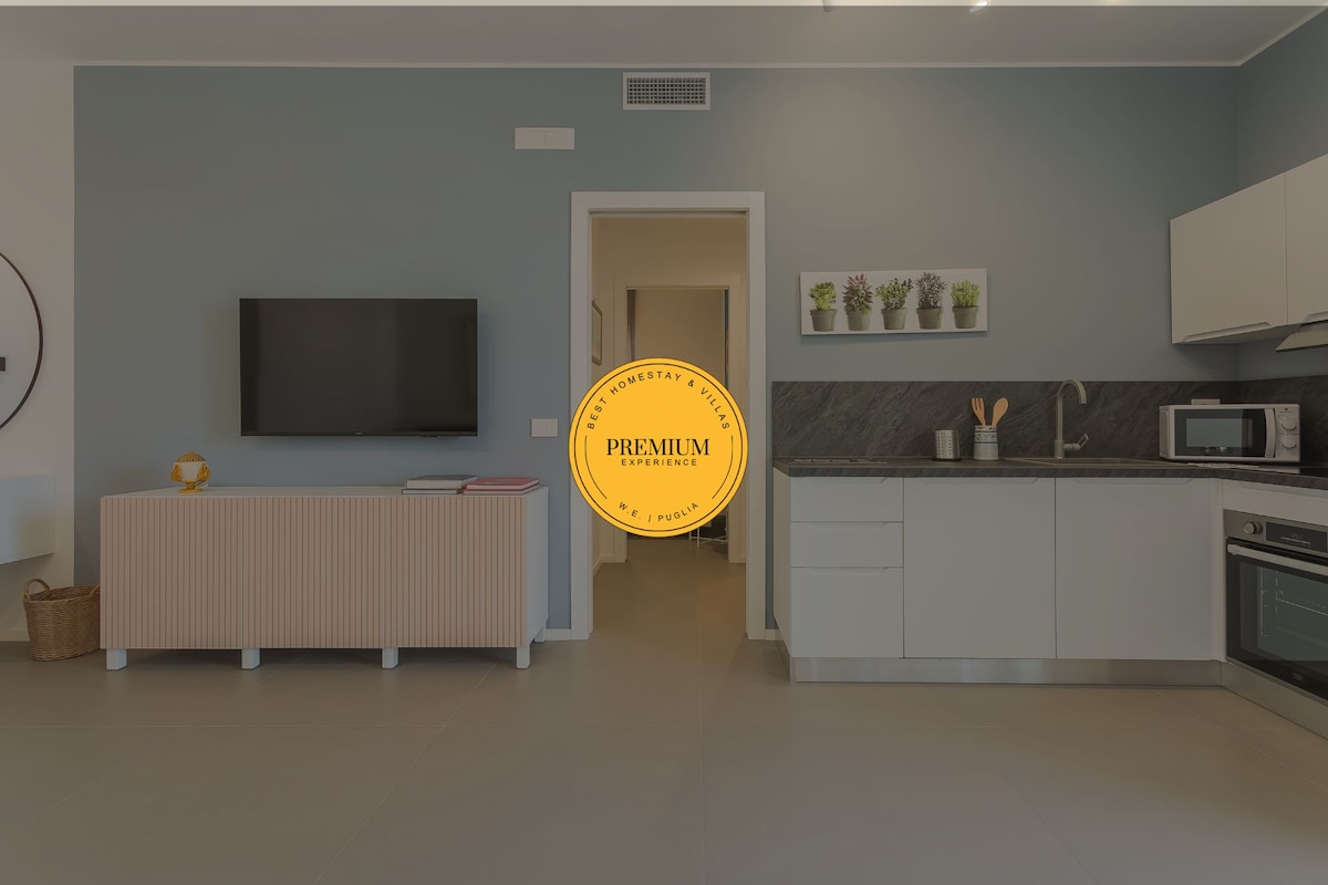Encantador apartamento de estilo costero. Apartamento a estrenar en edificio frente al mar a 60 metros de la espléndida «cala Paguro» y a 300 del centro de Polignano y de todos sus atractivos. Equipado con aire acondicionado y calefacción, cocina completa con lavavajillas, placa de inducción, habitaciones luminosas y amplia sala de estar-cocina con sofá cama, wifi y TV. Gran baño con ducha a ras de 2 metros. Mobiliario de calidad de estilo costero. Dispone de una cuna para niños de hasta 2 años.