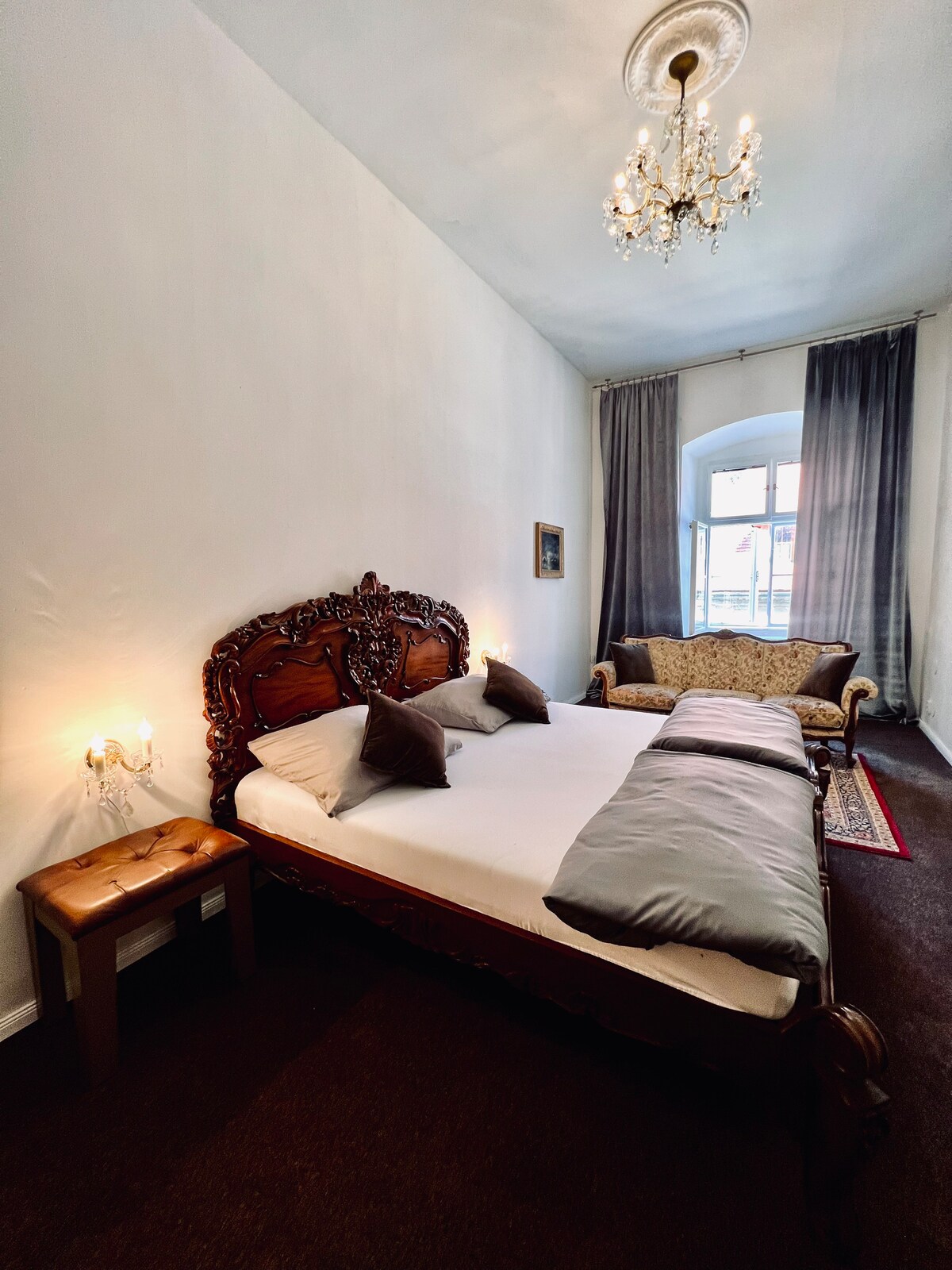 Este departamento está en el corazón del casco antiguo. Se encuentra en el edificio histórico del Palacio de Esterhazy a partir de 1743. El departamento amueblado con buen gusto y modernidad para tu comodidad. A pesar de que está situado en el corazón del casco antiguo, tu sueño estará tranquilo. El departamento está ubicado en el tercer piso con ventanas a un patio tranquilo. Tienes a tu disposición una cocina totalmente equipada, aire acondicionado, TV SATELITAL + Netflix, conexión wifi gratuita, tamaño 180 cm