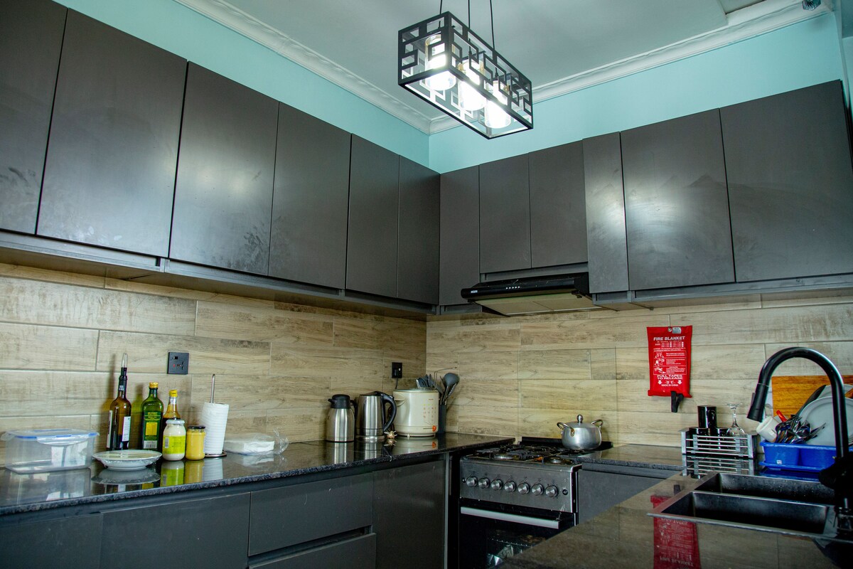 Relax with the whole family at this peaceful,cozy and very spacious 4 bedroom house located in one of the best neighborhoods of Kigali only 10minutes from the Airport. The house has excellent kitchen,free Wifi and hot water all to make you feel like home away from home