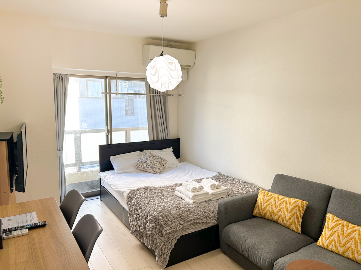 Estudio Japandi tranquilo y nuevo|Cerca de JR・Subway|Lavado y secado todo en uno|Ascensor|Almacenamiento de equipaje