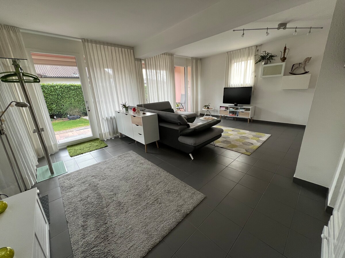 Apartamento en casa bifamiliar con jardín. Ubicación muy tranquila, a 5 minutos a pie de la parada de autobús. La casa se encuentra a los pies del Monte Brè, en Viganello alta, con hermosas vistas de la ciudad. Plaza para 2 coches disponible. Impuesto turístico a pagar en el alojamiento (2 CHF por persona y noche). Las fiestas están prohibidas y está prohibido fumar en la casa. Bicicleta eléctrica disponible en la parada de autobús cerca de la casa (5-10 minutos a pie). Cómo llegar en transporte público: autobús 461/autobús 5