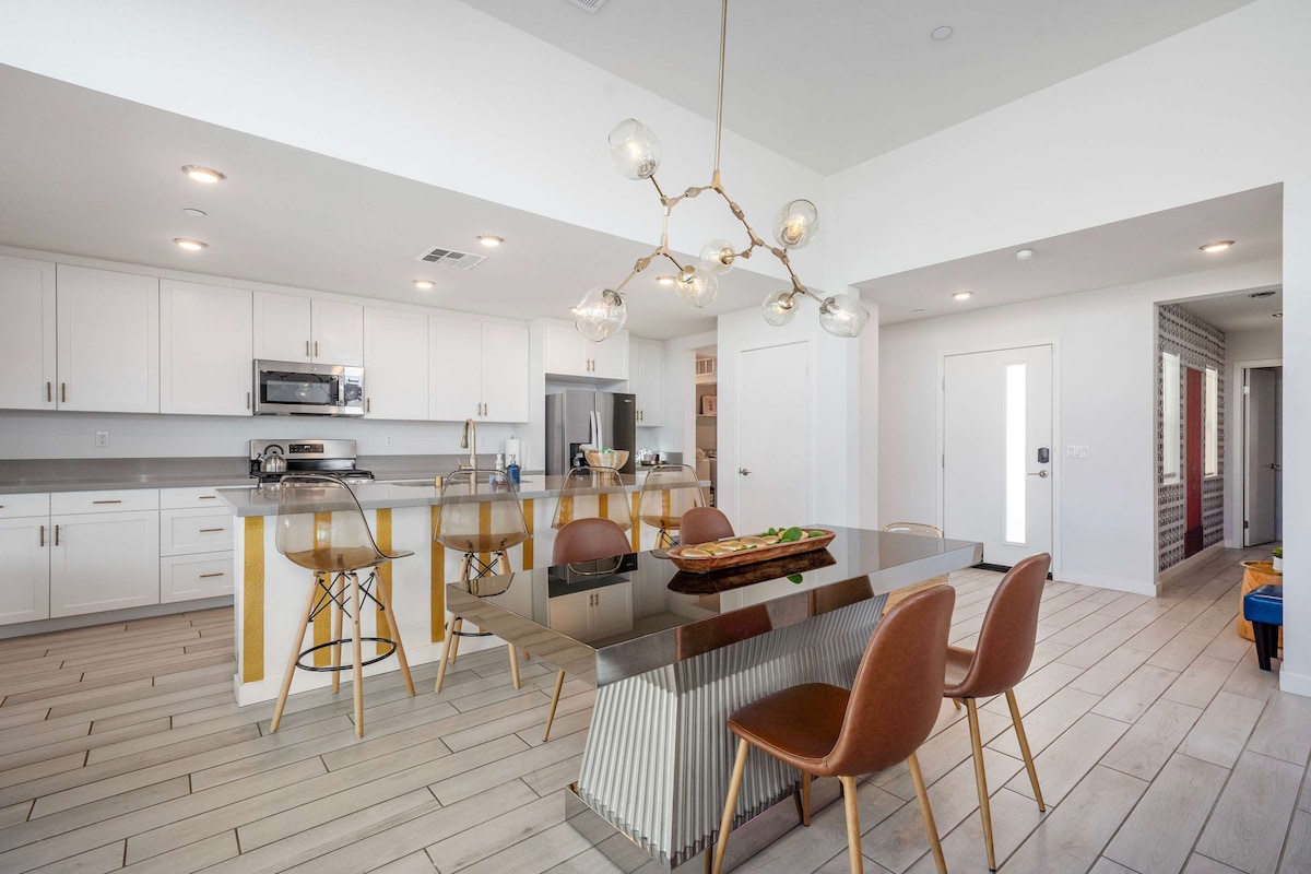 Sumérgete en esta lujosa casa de 3 dormitorios y 2 baños recién construida, con amplias ventanas que revelan los impresionantes paisajes, una piscina climatizada y un spa para disfrutar de baños bajo las estrellas, y un espacio dedicado al fitness. Relájate bajo cielos infinitos en 2 acres en tu propio oasis privado, perfecto para observar las estrellas y reunirse en el patio. Despiértate con impresionantes amaneceres, explora las maravillas de otro mundo de Joshua Tree y vuelve para darte un baño rejuvenecedor en tu refugio en el desierto.