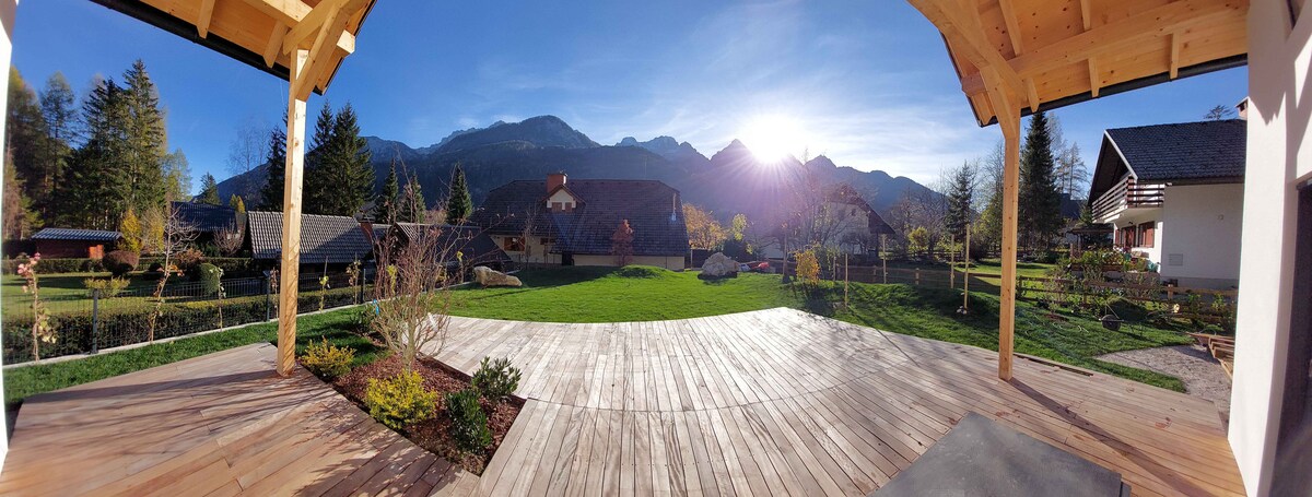 Ubicado tranquilamente a solo unos pasos del lago Bled, el nuevo Chalet Žana con apartamentos ofrece impresionantes vistas a la naturaleza intacta. El Chalet Žana ofrece elegantes apartamentos ecológicos (construcción de madera maciza), amueblados en un estilo minimalista moderno. El interior de madera con ventanales panorámicos del suelo al techo ofrece vistas al impresionante paisaje.