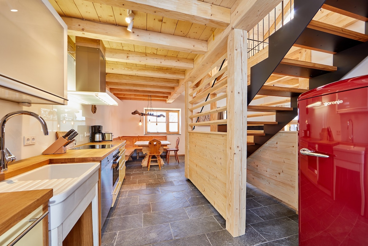 Hermosamente restaurada a casa "Die Alpe" en Garmisch. Llamamos a este departamento Gams o cabra de montaña. El Gams tiene pisos de piedra natural y madera de roble, una cocina con una acogedora zona de estar, sala de estar, dormitorio, segundo dormitorio abierto y baño moderno. Explora los detalles amorosos que se encuentran en todo el alojamiento. Nuestro objetivo es que estés deseando volver "a casa" al final de un día completo de deportes o visitas turísticas. Puedes ir caminando a tiendas, restaurantes/bares en 5 minutos. ¡Disfruta y relájate durante tu hospedaje!