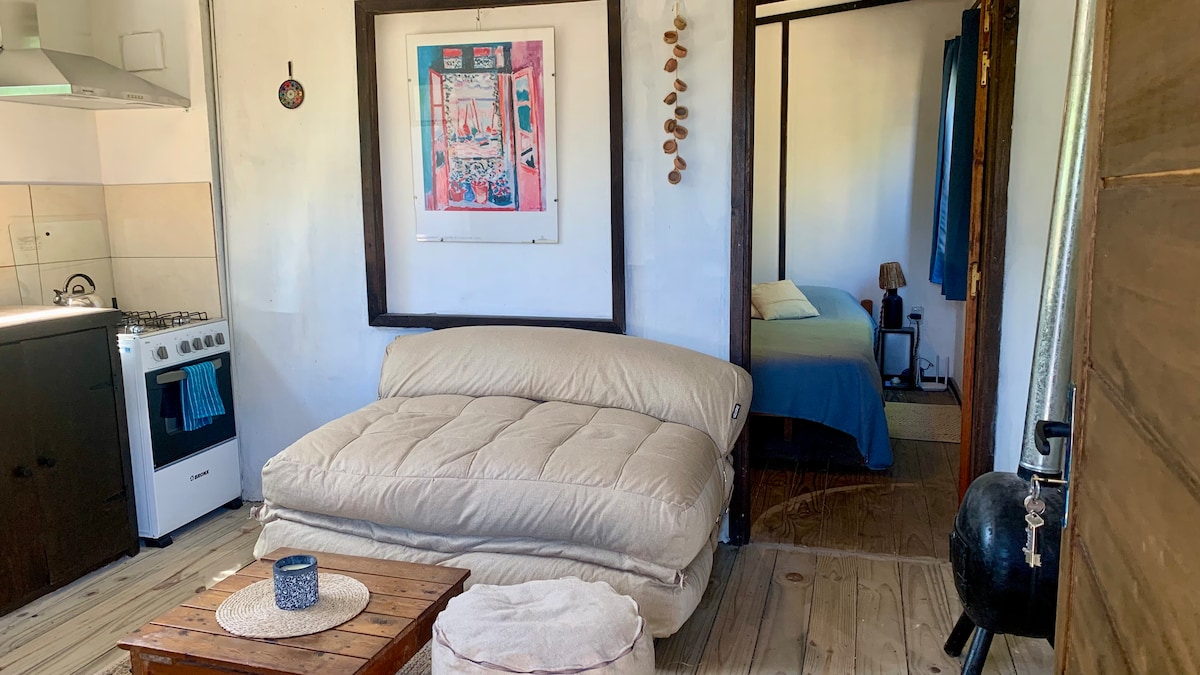 Acogedora casita construida con materiales naturales para 2 personas (con bebé) en una ubicación tranquila a 1 km de las playas de ensueño de La Paloma, a 1,5 km de la estación de autobuses y a 2,5 km del centro. Estacionamiento, WiFi, parrilla al aire libre y compras (pequeño supermercado y panadería a unos 150 m) disponibles. Perfecto para relajarse en medio de un pequeño jardín de vida silvestre.